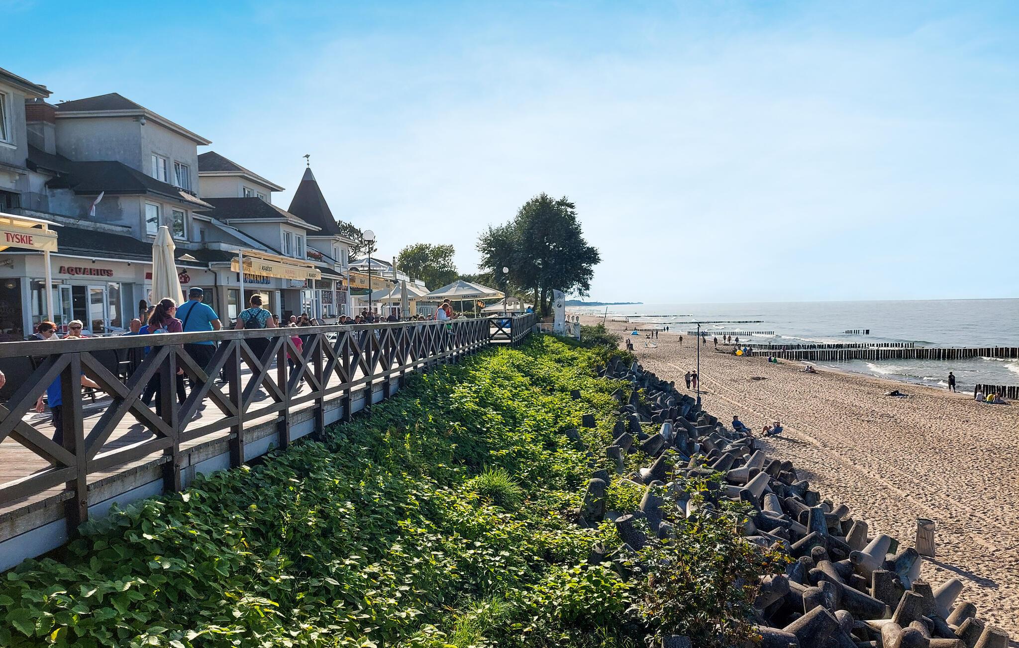 Lej en båd og oplev naturen fra vandet eller gå ned til stranden, hvor der venter jer mange skønne dage med solbadning og friske dukkerter. Hvis vejret ikke helt er med jer, er det oplagt at sætte en dag af til et smut til det nærliggende vandland. Af andre interessante udflugtsmål anbefales en afstikker til Köslin og fiskerbyen Darlowo ved Wieprza-floden. Det er en af ??de ældste byer i Pommern og er kendt for sin imponerende middelalderborg fra 1300-tallet. Slottet er yderst velbevaret og er et must for alle, der besøger Darlowo. Kopan-søen, som er en del af Natura 2000-området, er ideel til smukke vandreture og fiskeri.