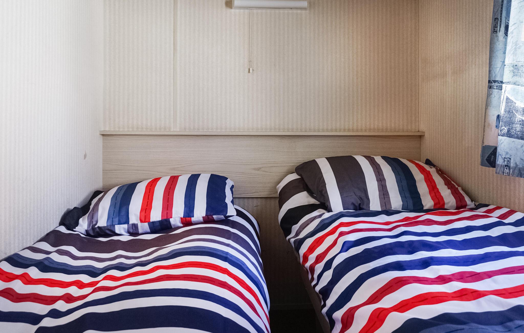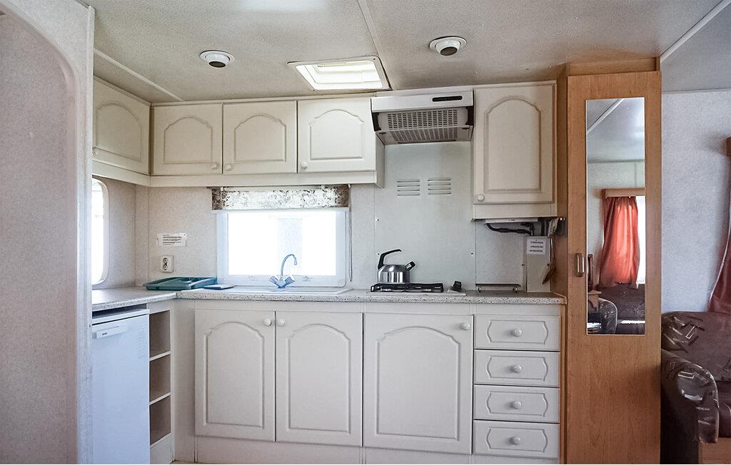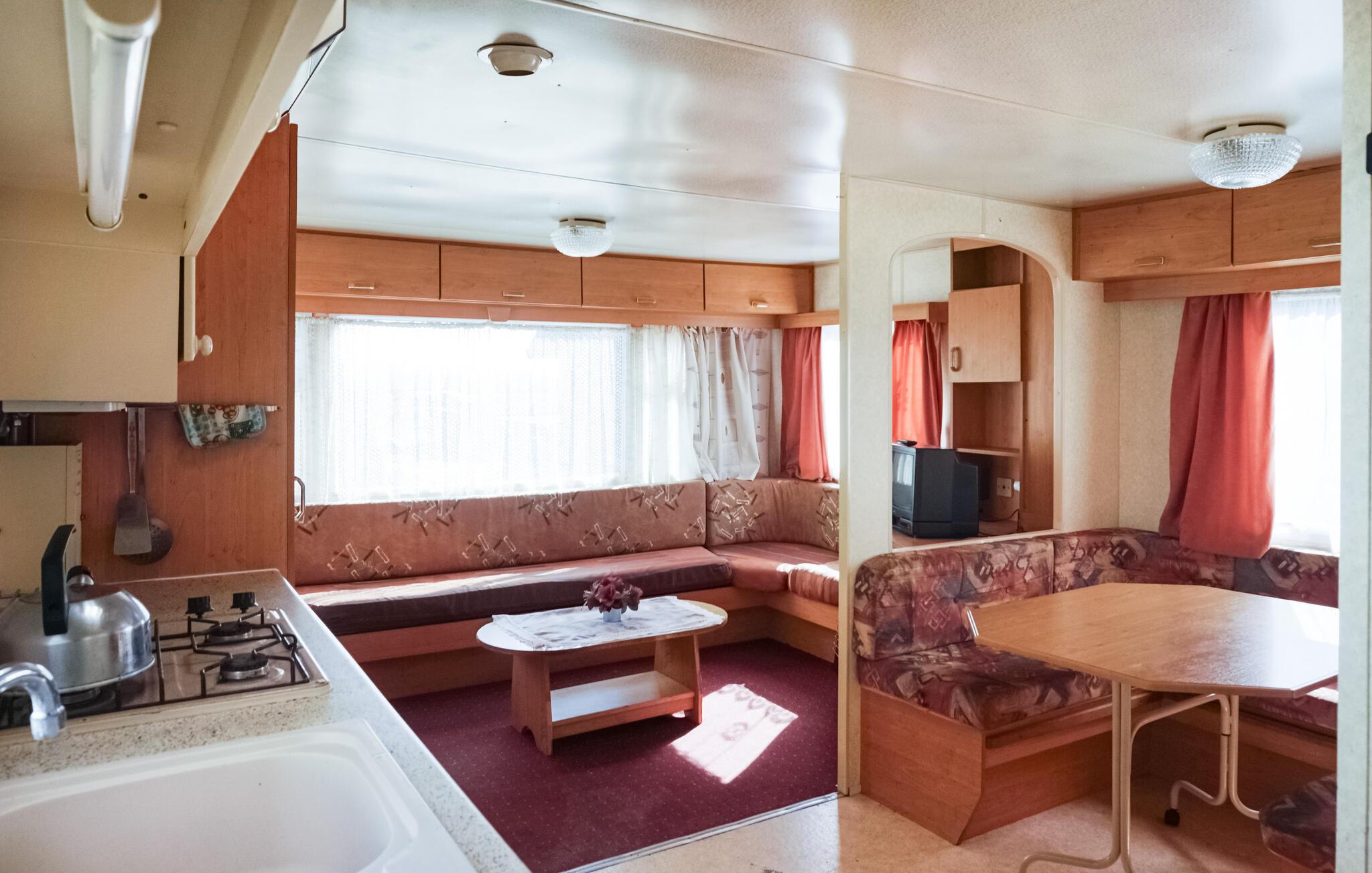 I dette fine mobilehome får I som par eller lille familie alt, I behøver til et herligt ophold uden de store bekymringer. Boligen er kompakt indrettet med rustikke møbler og enkel komfort, så I kan tilberede en god morgenmad og brygge en lækker kop kaffe, inden I begiver jer på tur.