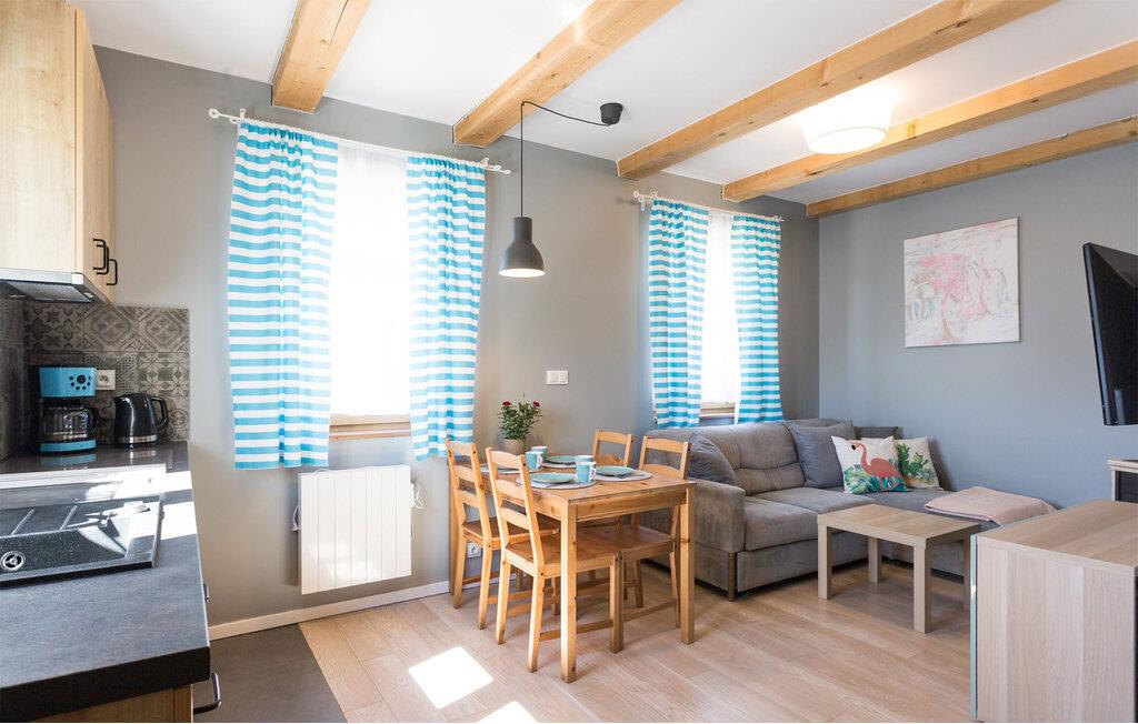 Velkommen til dette dejlige hus, der har en fantastisk beliggenhed tæt på flere søer og den smukke strand ved Østersøen. Huset er ikke det største, men indvendigt emmer det af hygge med gode faciliteter, der gør det nemt at slappe af før og efter dagens udflugter. Lad aftenen gå på hæld med et lækkert måltid mad og en hyggelig film i stuen, mens I lægger planer for de kommende dage.
