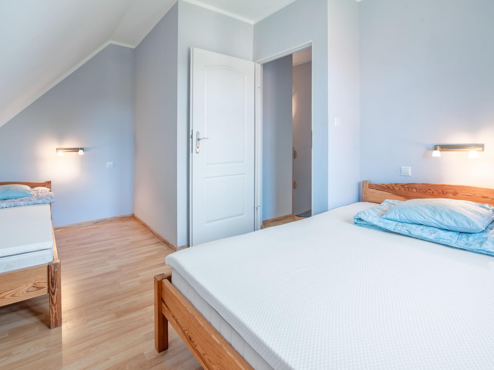 Terraced house "Domek Joanna". 5 houses in the resort. On the outskirts, in a quiet, sunny position, 2 km from the sea, 1.5 km from the lake, 2 km from the beach, in the countryside. For shared use: property 2'000 m2 (fenced), lawn. Arbour, barbecue, children's playground (slide). In the complex: trampoline. Parking at the house. Grocery 100 m, restaurant 100 m, bus stop, railway station 1.5 km, sandy beach 2 km. Tennis 1 km, riding stable 1 km. Nearby attractions: Park dinozaurów 1 km, Oceanarium 2 km. Well-known lakes can easily be reached: Sarbsko 1,5 km, Lebsko 3 km. Hiking paths: Slowinski Park Narodowy 3 km. Groups of teenagers on request only. Please note: main road 200 m from the property. The photograph shows a typical example. Additional accommodations can be booked.