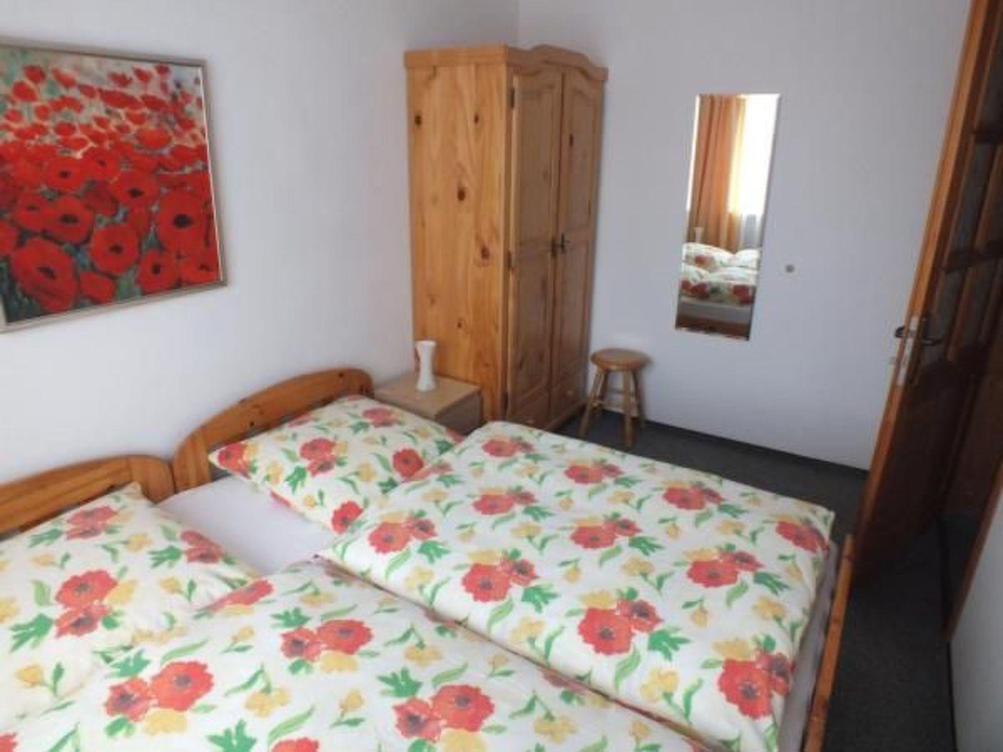 Tastefully and more than just functionally furnished 2-room flat on the 1st floor. Living/bedroom with pull-out double sofa bed, wardrobe and dining area with table and chairs, as well as integrated complete kitchenette, electric cooker with 4 hotplates, oven, fridge, coffee machine, electric kettle, pots and pans and crockery. A separate double bedroom, wardrobe, shower/WC, satellite TV with German programmes, WLAN and heating. Large garden with garden furniture, children's swing, barbecue, bicycles on request. Car parking space on the fenced garden property.
