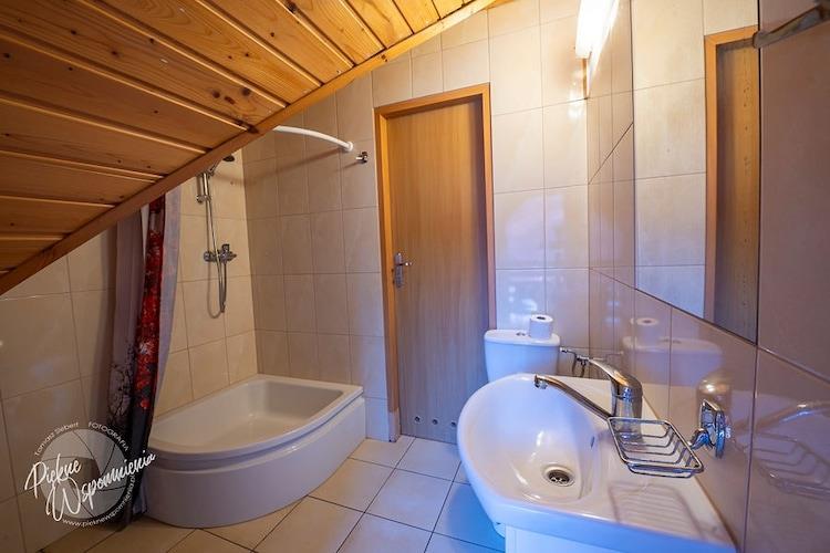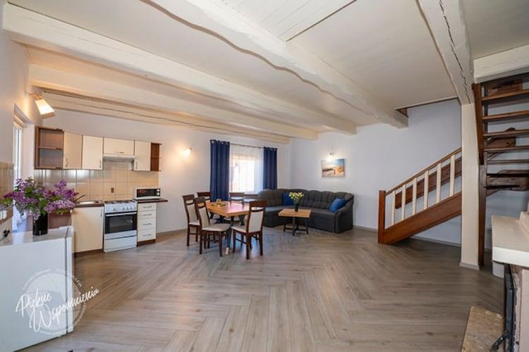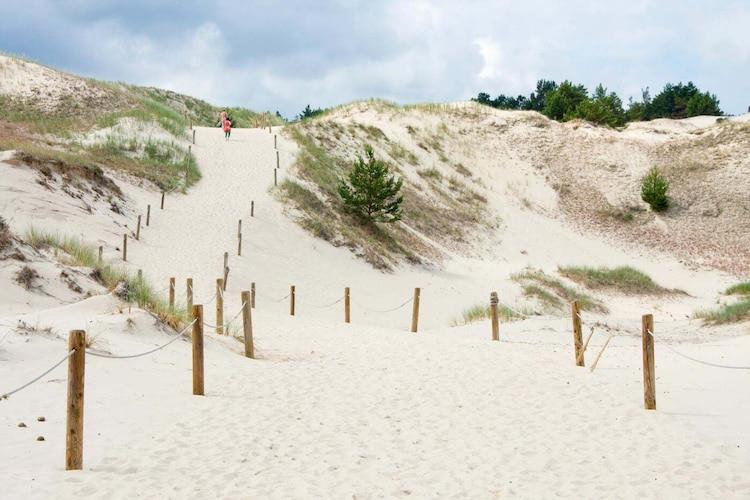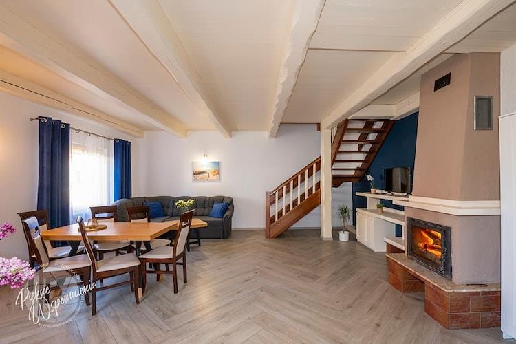 En fremragende beliggenhed midt i en fyrreskov, lige ved siden af en privat strandadgang (280 meter fra havet). Dette professionelle feriested er dedikeret til at tilbyde en perfekt ferie, især for familier med børn. Det tilbyder omfattende faciliteter, herunder et swimmingpoolkompleks og et spa-område. Komfortable toetagers feriehuse med overdækkede terrasser, komplet med loungemøbler og grillfaciliteter. I stueetagen er der en rummelig stue (TV, spisebord, dobbelt sovesofa, pejs), et køkken og et badeværelse med bruser. På første sal er der to soveværelser (et dobbelt og et tredobbelt) og et ekstra toilet. Centralvarme. Trådløst internet er tilgængeligt. Feriestedets velholdte grund omfatter en stor sommerpool omgivet af liggestole, et separat børnebassin med en lille børnerutsjebane, en saltgrotte og et fitnessrum. Der er to attraktive legepladser til rådighed for børn, og der tilbydes underholdningsaktiviteter i sommermånederne. Mod et ekstra gebyr kan gæsterne benytte spa-området (sauna, hydromassage), solarium og vaskemaskine. Sikker parkering er tilgængelig (1 plads pr. hus inkluderet i prisen). Der er også en restaurant, der serverer fremragende fiske- og regionale retter samt snacks og desserter. Prisen inkluderer: sengelinned, el, vand, gas, varme, swimmingpool (åben fra 20. juni til 30. august), fitnessrum, saltgrotte, parkering (1 plads pr. hus), internet, brænde, slutrengøring og børneunderholdning. En barneseng og højstol er tilgængelige efter anmodning. Leba er et af de mest populære feriesteder på den polske kyst. Det skylder sit ry på sin vidunderlige naturlige skønhed, klima og omfattende infrastruktur. Leba tilbyder fremragende forhold til vandsport såsom windsurfing, havsejlads og sejlads på indlandet samt fiskeri. Leba-området er berømt for sine unikke, europæisk spændte klitter og brede strande med usædvanligt lyst, blødt og rent sand.