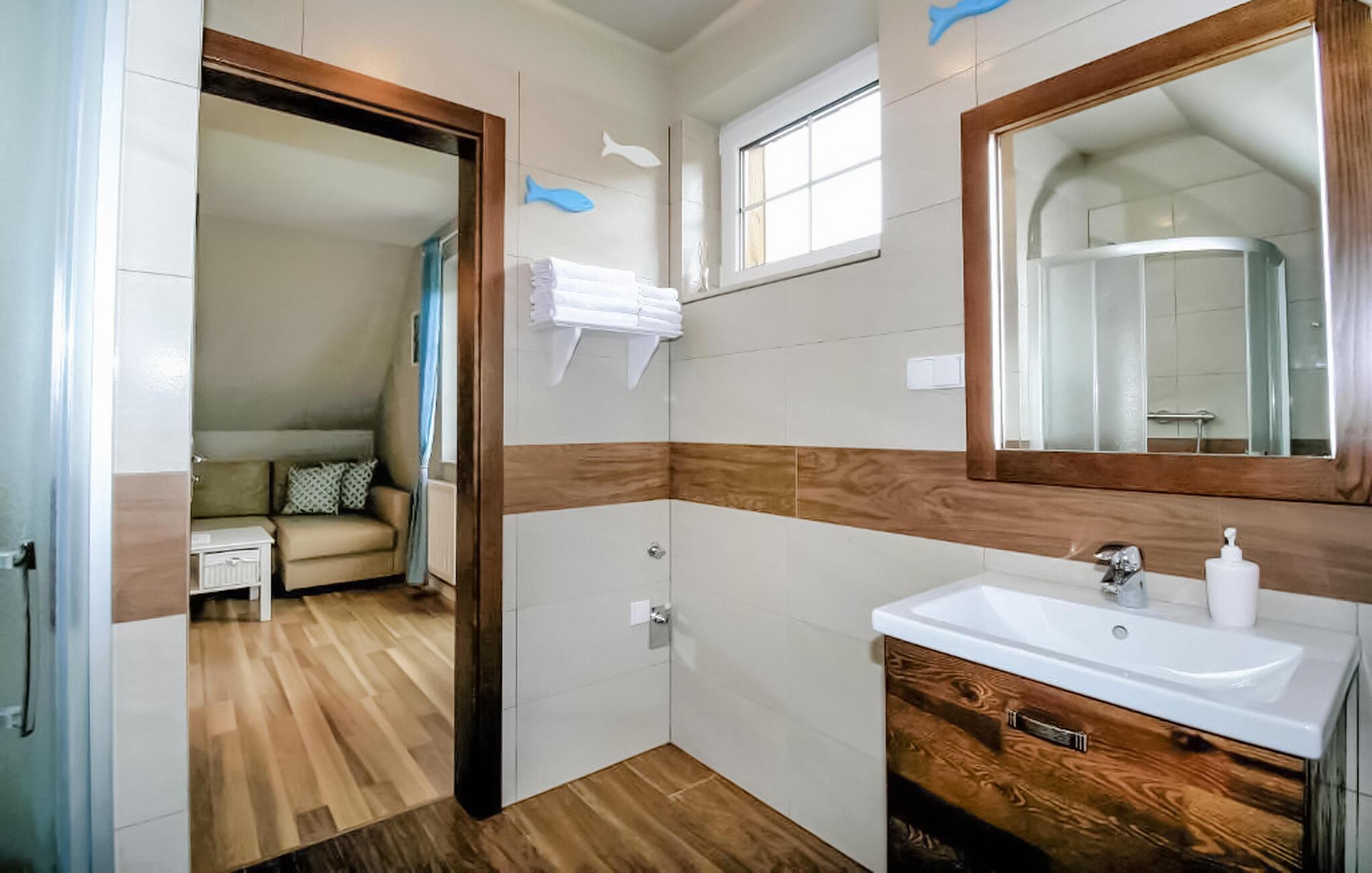I denne hyggelige og fuldt udstyrede ferielejlighed i Lipnica kan I nyde en afslappende tid med familien. Lejligheden ligger i et hus med flere enheder og giver jer en smuk udsigt over søen, som I kan nyde fra balkonen. Med moderne faciliteter og en indbydende atmosfære finder I alt, hvad I behøver for et afslappende ophold. Forkæl jer selv med ren afslapning i spabadet eller saunaen (mod betaling), mens børnene leger i haven, eller nyd tid sammen ved volleyballbanen eller bålet.