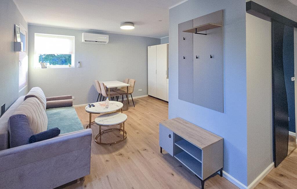 Denne moderne og smagfulde ferielejlighed tilbyder jer et behageligt tilflugtssted for en harmonisk pause væk fra hverdagen. Gør nogle lækre ferieretter klar i det åbne køkken og tag plads ved det indbydende spisebord. Slap af i den komfortable sofa med en god bog eller reflekter over jeres oplevelse over et glas vin.