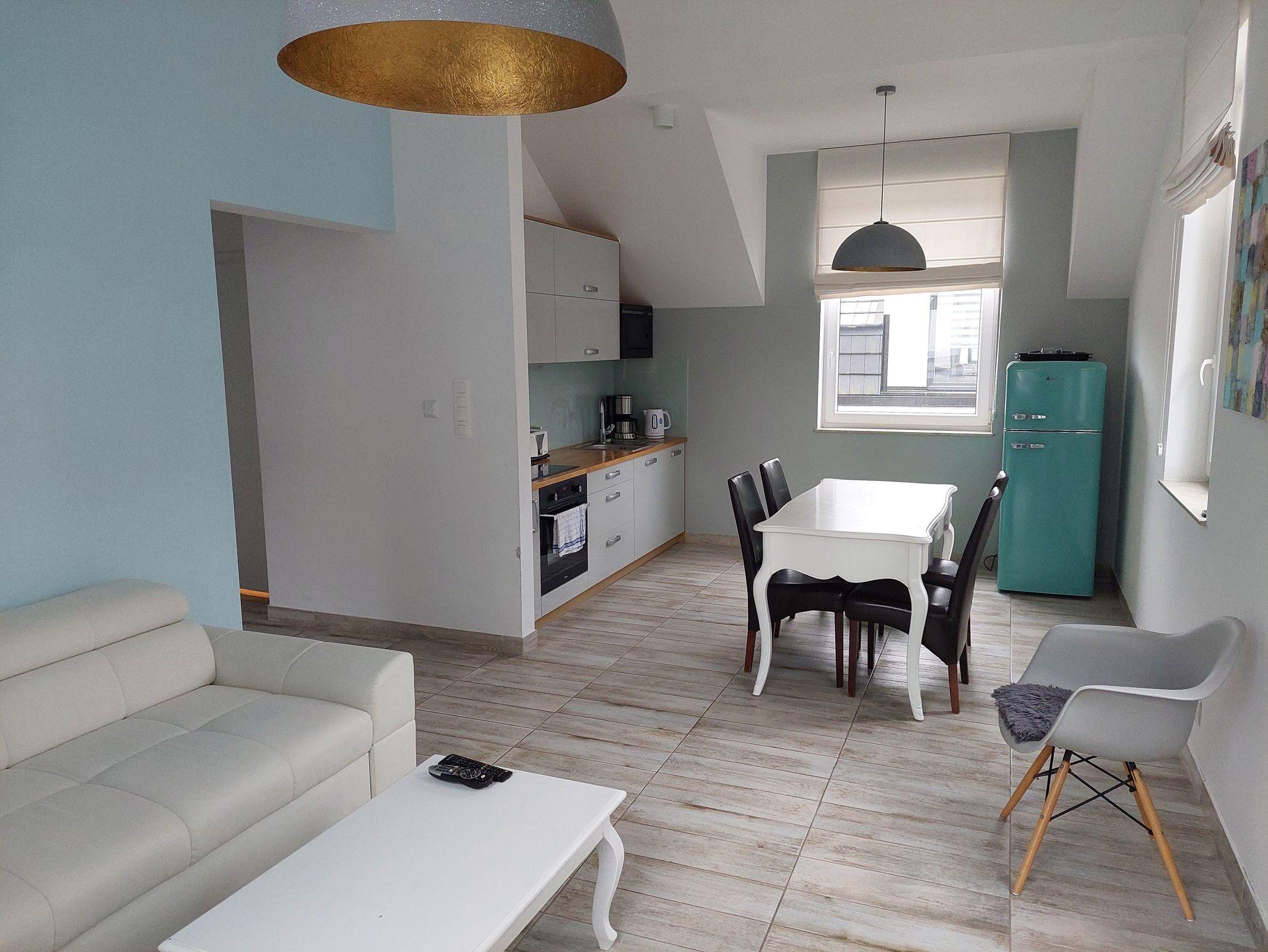Neue geräumige Ferienwohnung in großzügiger geschlossener Anlage mit 30 Einfamilien- und Zwei-Wohnungshäusern sowie einem kleinen Appartementhaus in ruhiger Ortschaft ukcin zwischen Misdroy und Kolberg. Zum komfortablen Wohlfühlen eingerichtet. Zum Strand sind es 400 m durch den Wald, über eine lokale Straße und wieder durch den Wald.