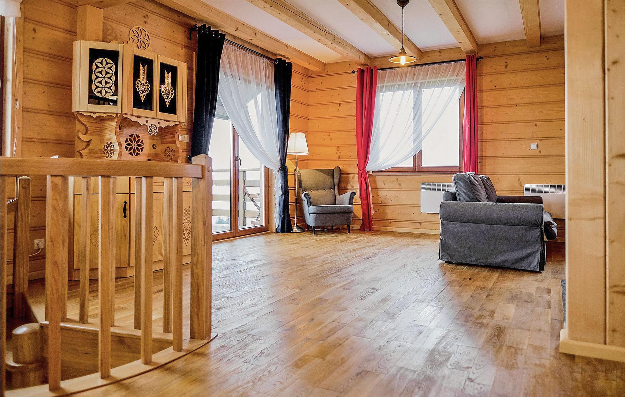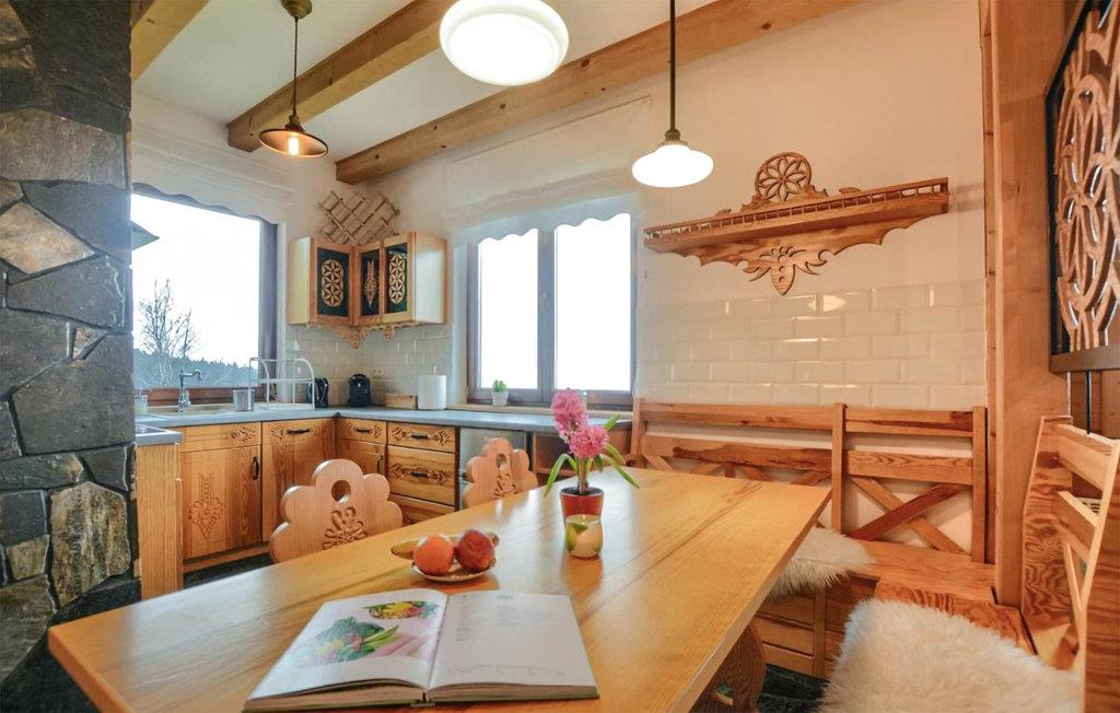 Velkommen til dette indbydende feriehus, som byder velkommen midt i skønt bjerglandskab og byder på optimale forhold for en fantastisk familieferie. Husets stemning er hjemlig, dens rustikke charme er skabt af en lang række træelementer, der møder moderne og komfortabel indretning - her kan I finde jer godt tilpas sammen. Om aftenen kan I finde jer tilpas ved spisebordet i køkkenet og gennemgå dagens oplevelser eller putte jer i sofaen og lytte til de knitrende flammer i pejsen.