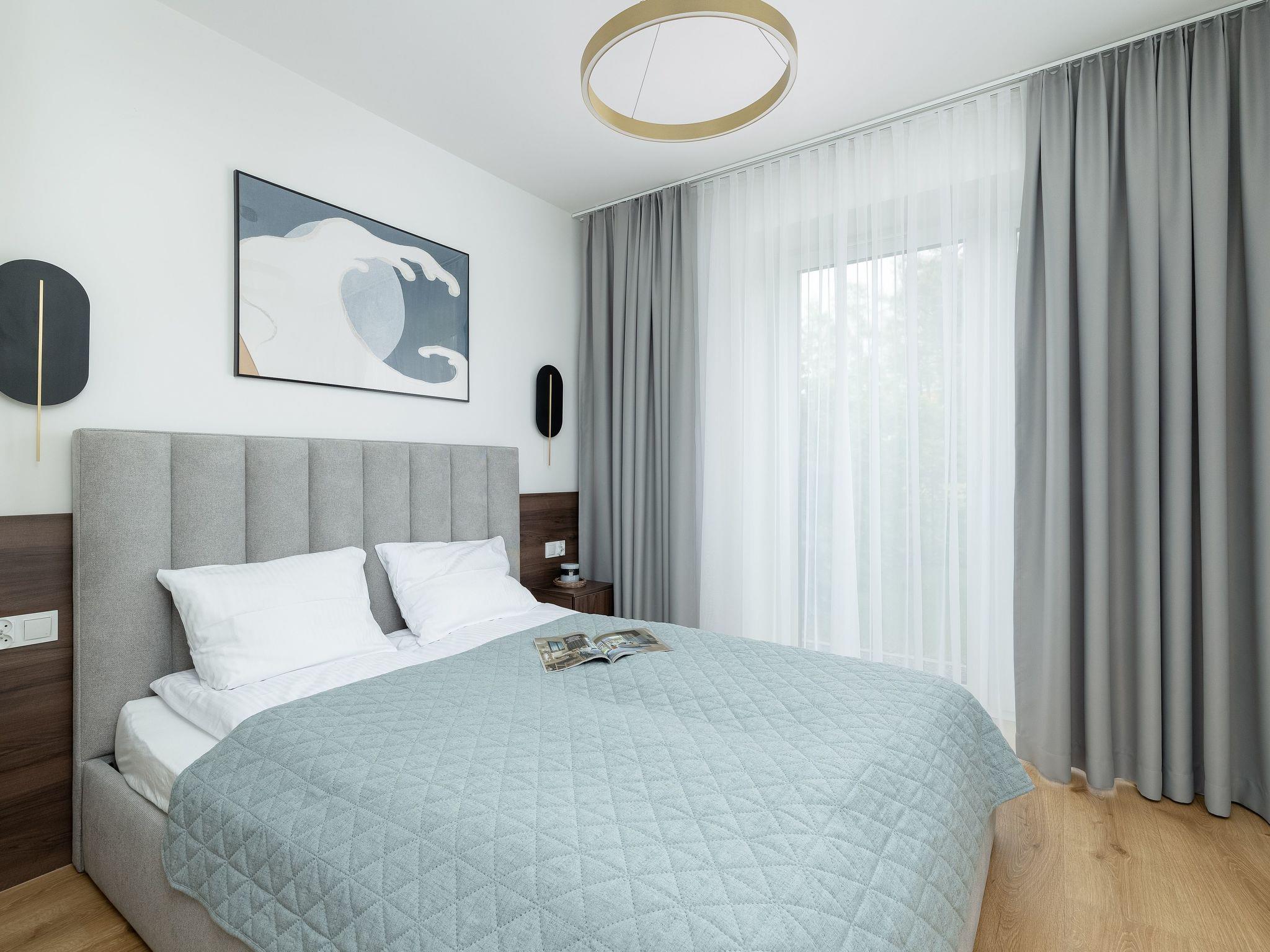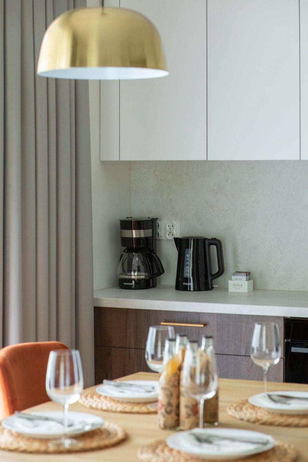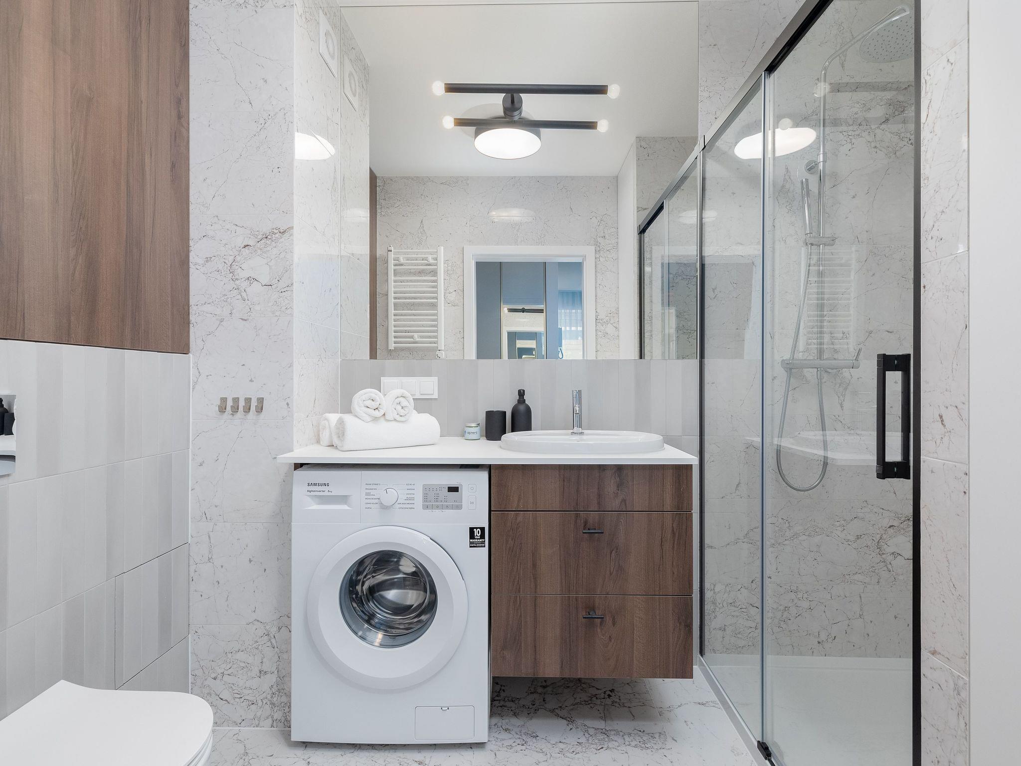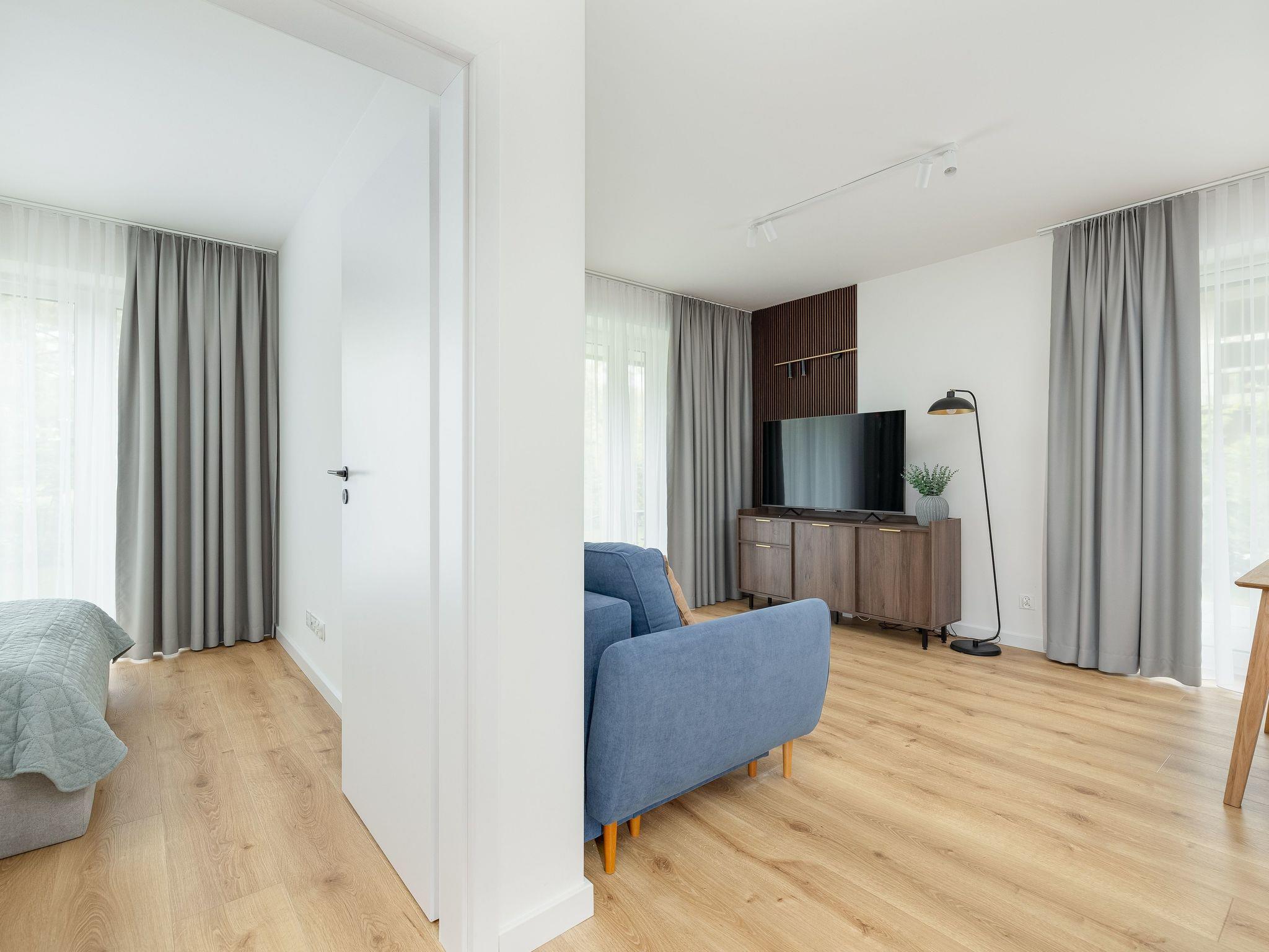 The interior of the flat is one bedroom, one bathroom with shower, which guarantees comfortable space for all guests. Fully equipped kitchen (kitchenette - oven, fridge, microwave, 4-burner hob, kettle, pots and dishes)