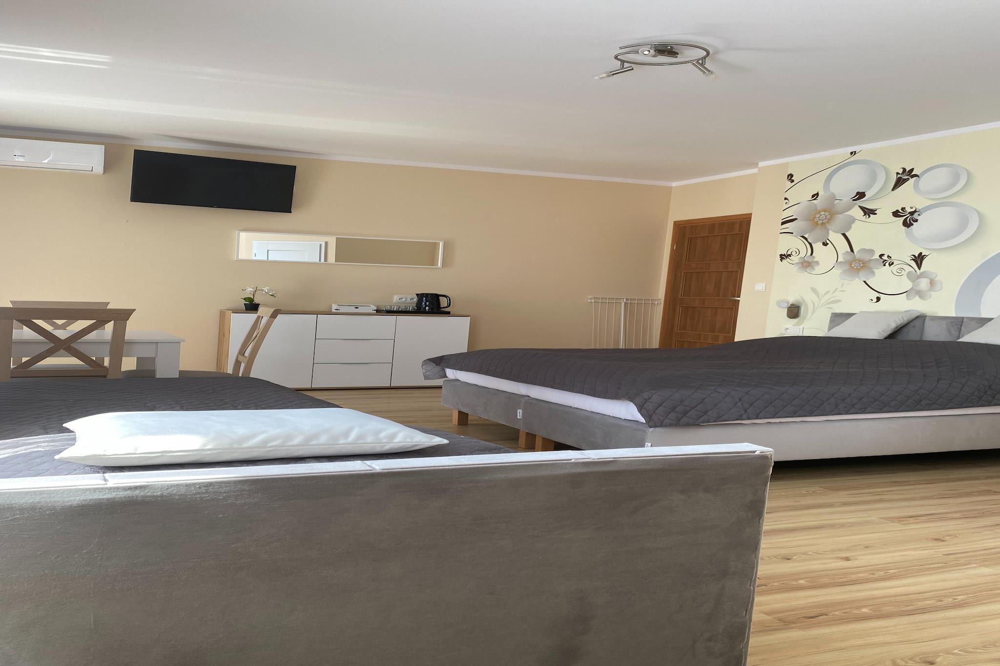 Vi tilbyder et komfortabelt 4-personers studie i Miedzywodzie, ideelt til en afslappende ferie. Vores studie er udstyret med komfortable senge, aircondition og adgang til højhastighedsinternet, som sikrer komfort og bekvemmelighed under dit ophold. Der er også gratis parkering, og i din fritid kan du bruge Netflix-platformen til at se dine yndlingsfilm og -serier. Det fælles køkken er perfekt udstyret, så du kan tilberede dine egne måltider. Derudover inviterer vi dig i sæsonen fra begyndelsen af maj til midten af september til at bruge den udendørs swimmingpool og jacuzzi - perfekt til at slappe af efter en dag på stranden. Miedzywodzie til en lille installation beliggende ved Østersøen, som fryder sig med smukke strande og ren luft. Der er cykel- og vandrestier i området, perfekt til enkel afslapning. Det er værd at besøge de lokale frilandsmuseer og fyrtårne, som byder på en enestående udsigt over havet. Miedzywodzie er en fremragende base for ture til nærliggende turistattraktioner, såsom Wolin National Park, Miedzyzdroje og Swinoujscie.