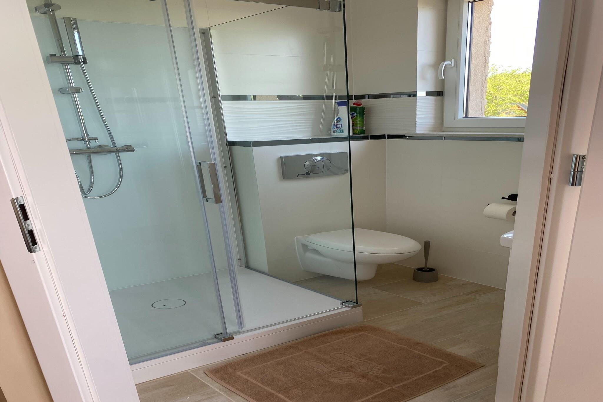 På 1. etage: (Køkken(deles med andre gæster)(elkedel, cooker, brødrister, komfur(Komfur med to kogeplader, induktion), espressomaskine, mikrobølgeovn, køle-fryseskab), Stue/soveværelse(enkeltseng, enkeltseng, dobbeltseng eller 2 enkeltsenge Senge, Fjernsyn(parabol, Tyske TV-kanaler), spisebord), badeværelse(bruser, håndvask, toilet)) Internetadgang, Spabad, Netflix, rejseseng, klimaanlæg, parkering, swimmingpool(deles med andre gæster, udendørs, 8 x 4 m., opened from May upto and including 1/2 Sep), cykler til rådighed, barnestol