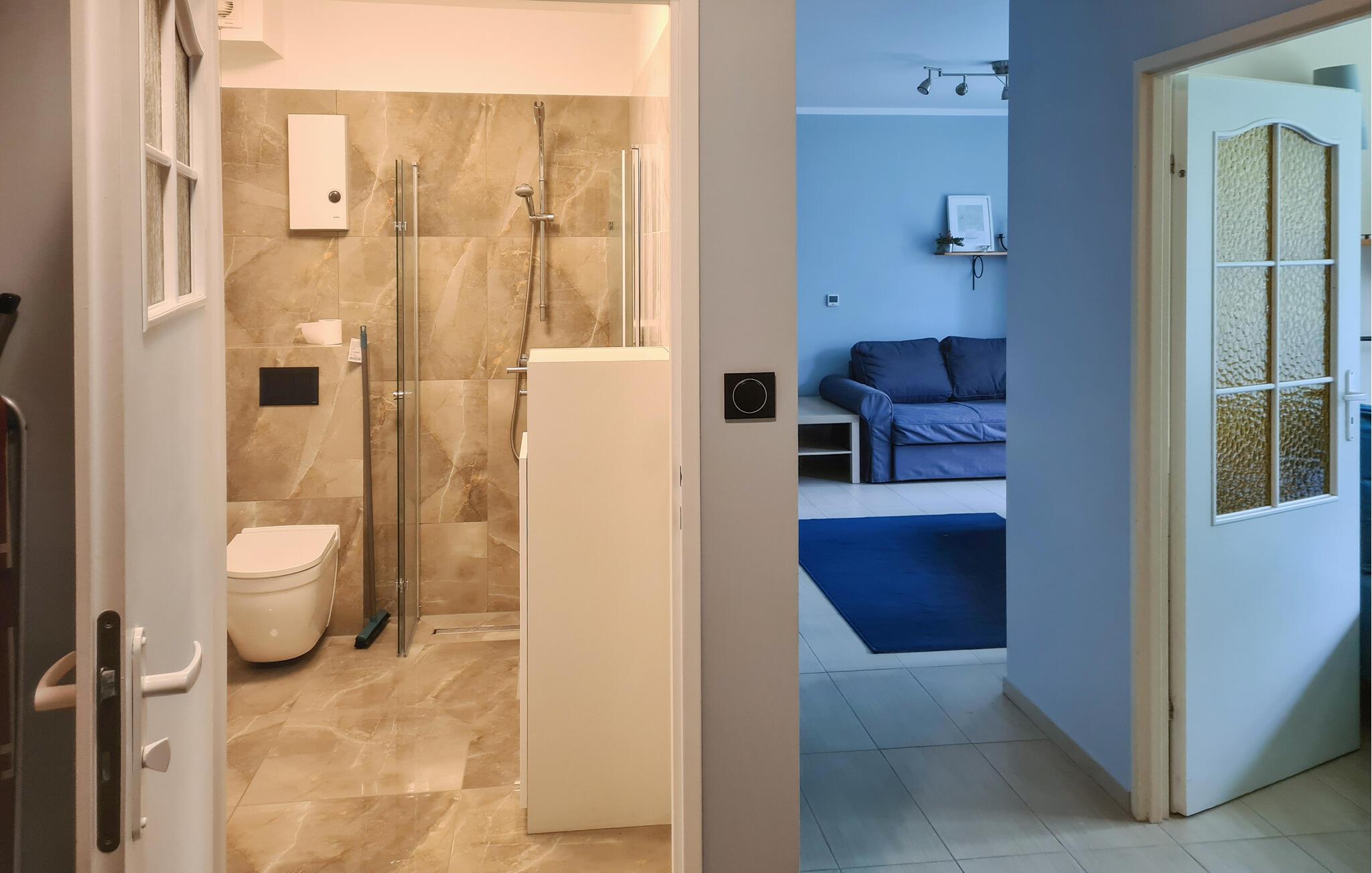 Badeværelse (nr. 1) - WC. Varmt og koldt vand. Bruser