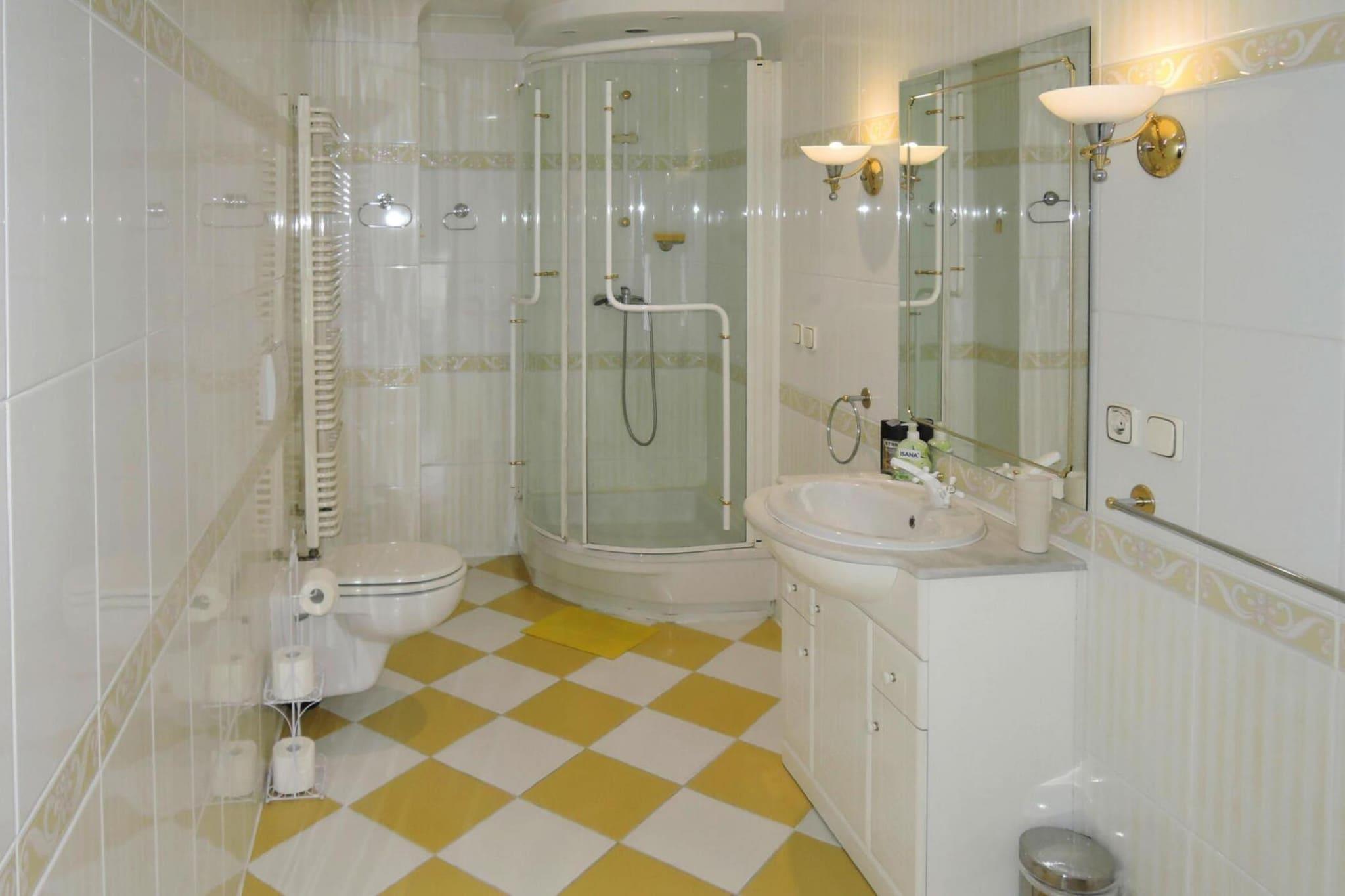 Stor, hyggelig, fuldt møbleret ferielejlighed i den populære badeby Miedzyzdroje, direkte ved skoven i Wollin National Park, i en rolig beliggenhed. 200 kvadratmeter af den 600 kvadratmeter store ejendom er til eksklusiv brug. På solrige dage kan du nyde udsigten fra din altan og se travlheden i byen! På blot et par minutter fra din bolig kan du nå de mange butikker, caféer og restauranter i byen. Omgivet af grønne skove, nær den maleriske Østersøklippe og ikke langt bag den tysk-polske grænse, ligger den populære badeby Miedzyzdroje (Miedzyzdroje) på øen Wolin. Den livlige kurby har en lang tradition - du vil møde et sundt mikroklima, det rene vand i Pommernbugten og en veludviklet turistinfrastruktur. Højdepunkter er uden tvivl den smukke strand og Wolin National Park. Langs promenaden er der mange caféer og restauranter, hvor du kan blive hængende og forkæle dig selv med nogle kulinariske lækkerier. I centrum af landsbyen finder du en stor indkøbsarkade med små butikker, og der er også supermarkeder og discountbutikker. Aktiviteter i nærheden: I Mi?Dzyzdroje er der en bred vifte af fritidsaktiviteter - kysten er stort set uudforsket, i det smukke bagland kan du være aktiv af hjertens lyst, med mange cykel- og vandrestier en drøm for naturelskere. Om sommeren er der regelmæssige spa-koncerter og forskellige musikfestivaler på friluftsscenen i spa-haverne. Fra molen er der meget udflugtstrafik til naboøen Usedom. Øen i den vestlige del af landet byder på naturskønne højdepunkter så langt øjet rækker: uberørt natur, dybblå søer og brede hvide strande vil inspirere dig. Med lidt held kan du se ørne, kronhjort og vildsvin i nationalparken. Hvad tænker du om