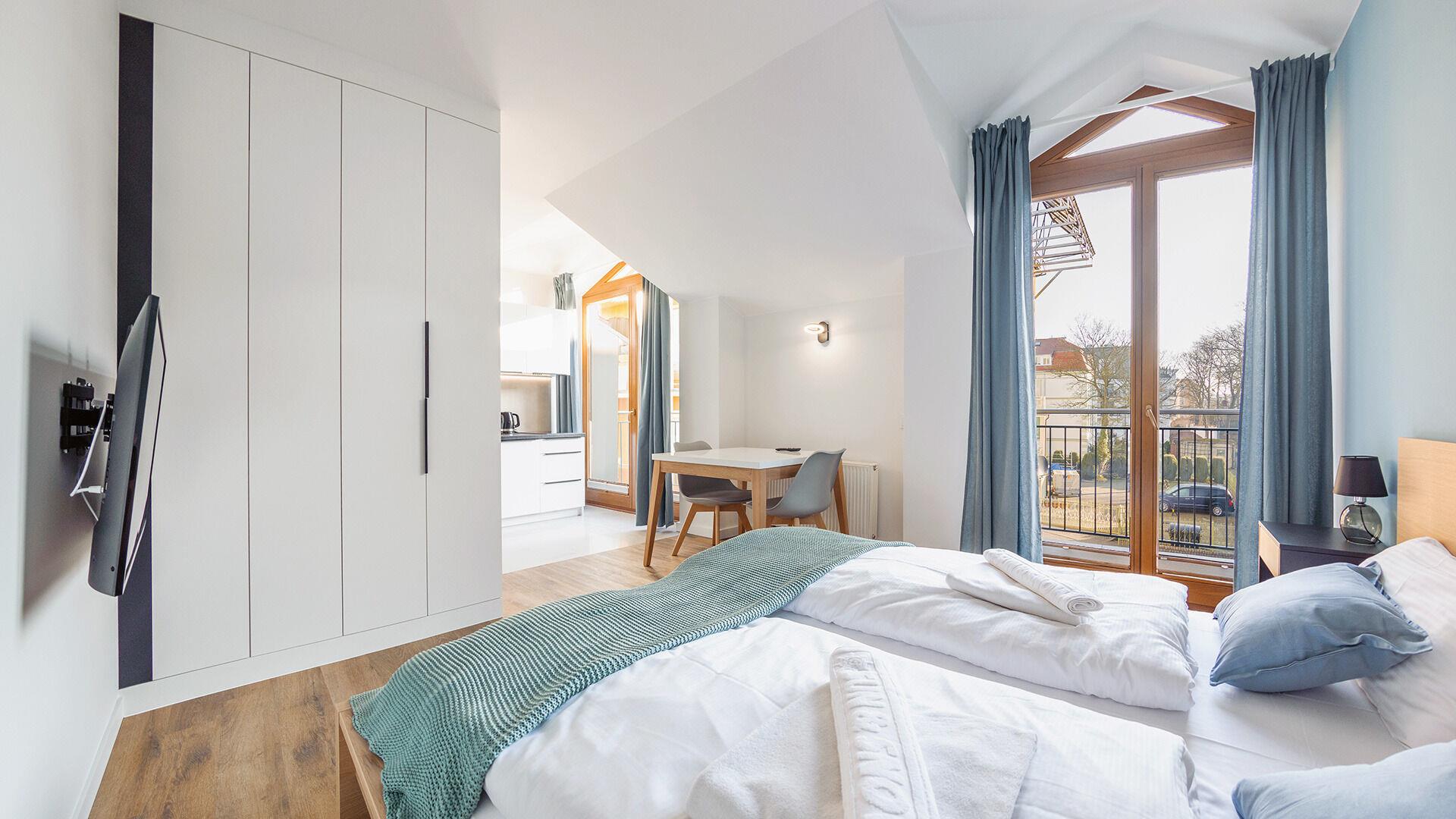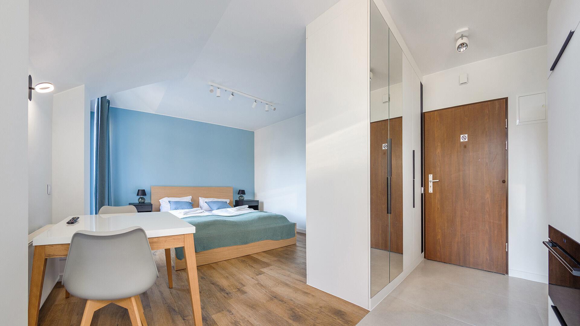 • Haustiere sind in der ausgewählten Wohnung erlaubt. Die Kosten für den Aufenthalt mit einem Haustier betragen 40 PLN pro Tag.