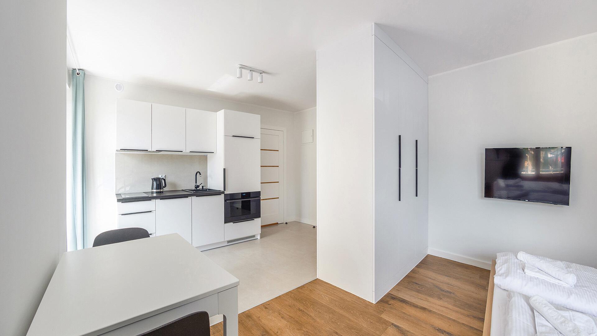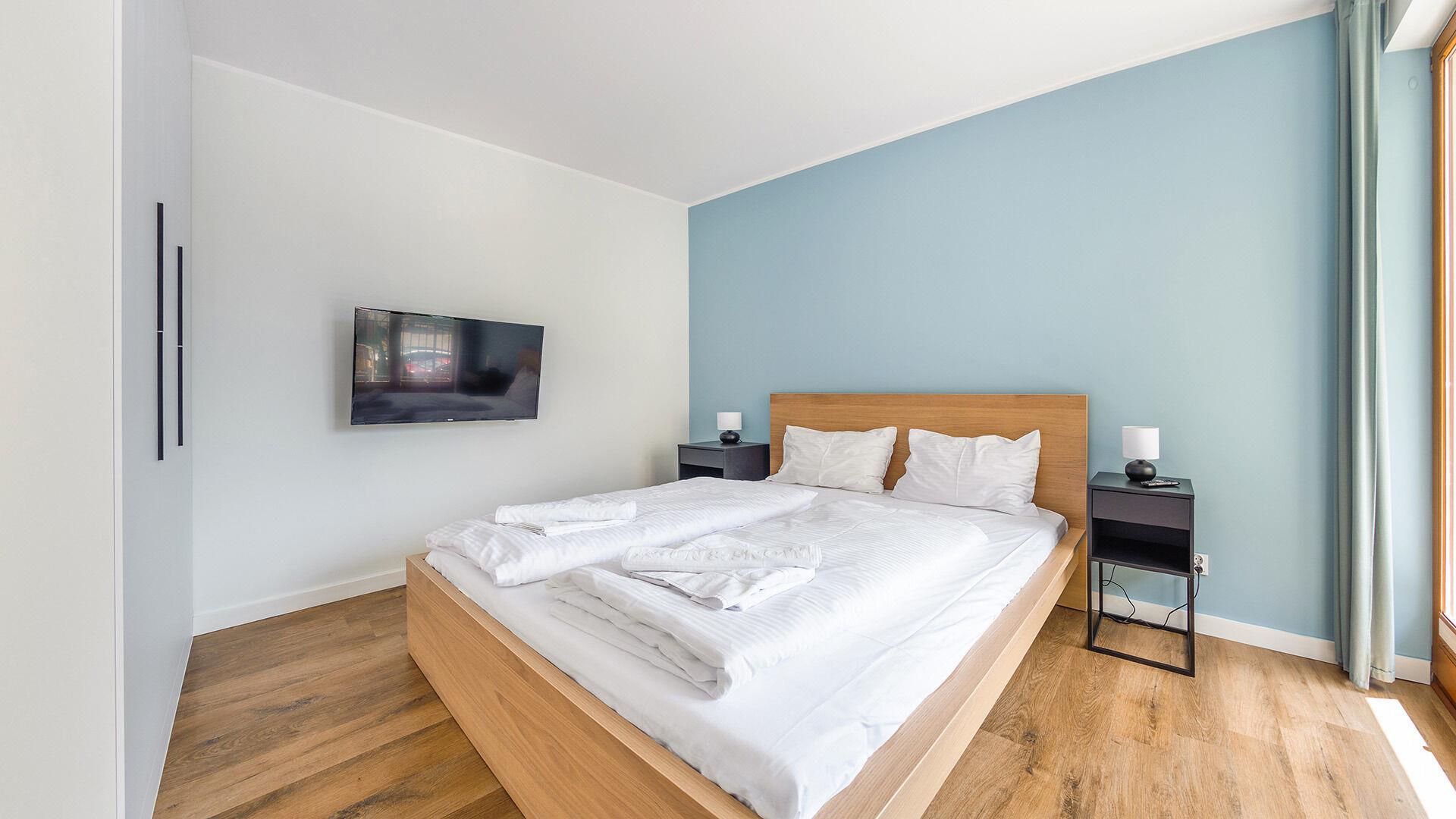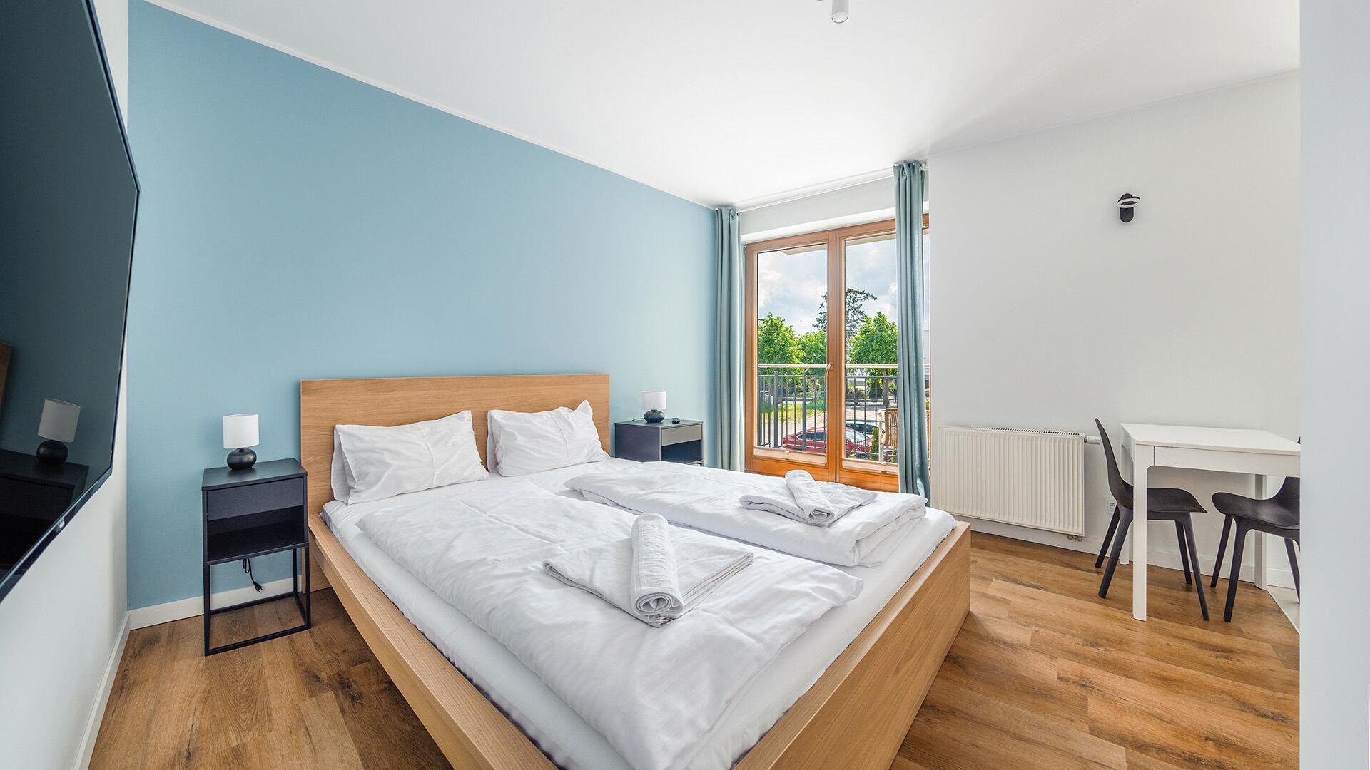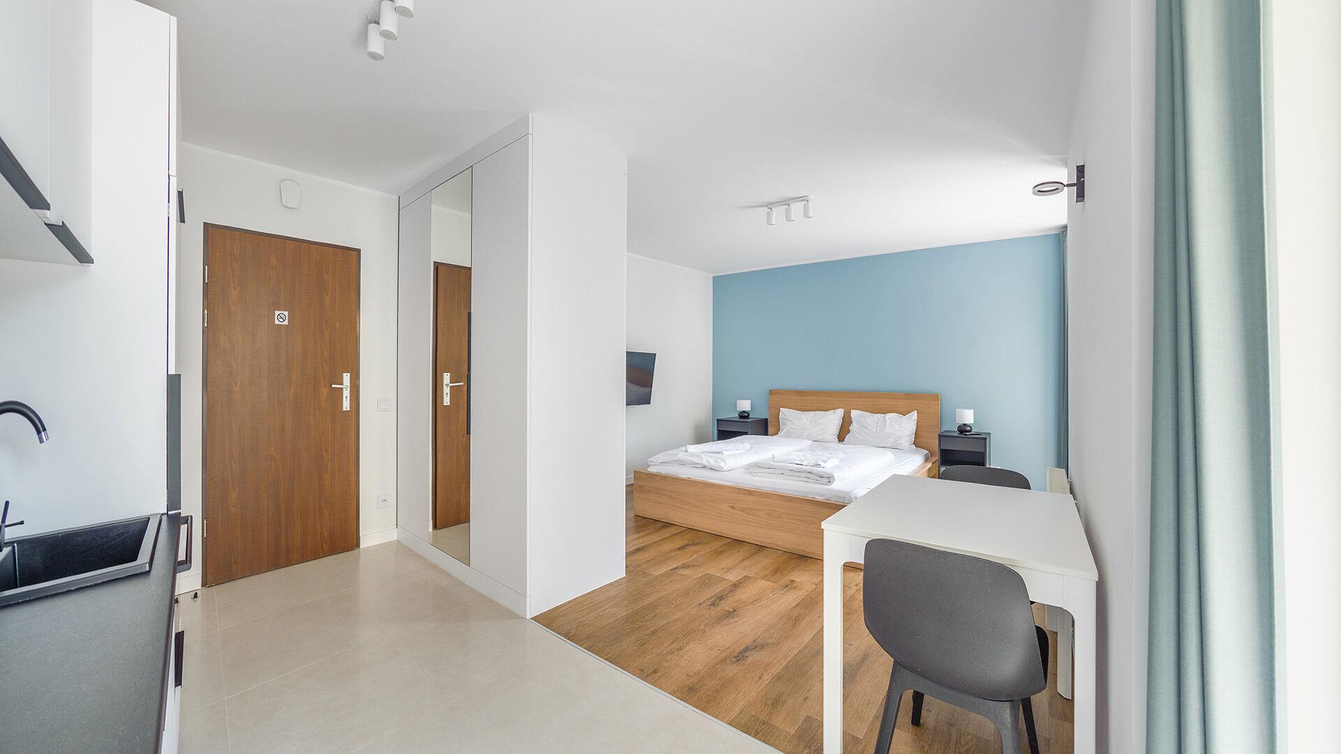 • Haustiere sind in der ausgewählten Wohnung erlaubt. Die Kosten für den Aufenthalt mit einem Haustier betragen 40 PLN pro Tag.