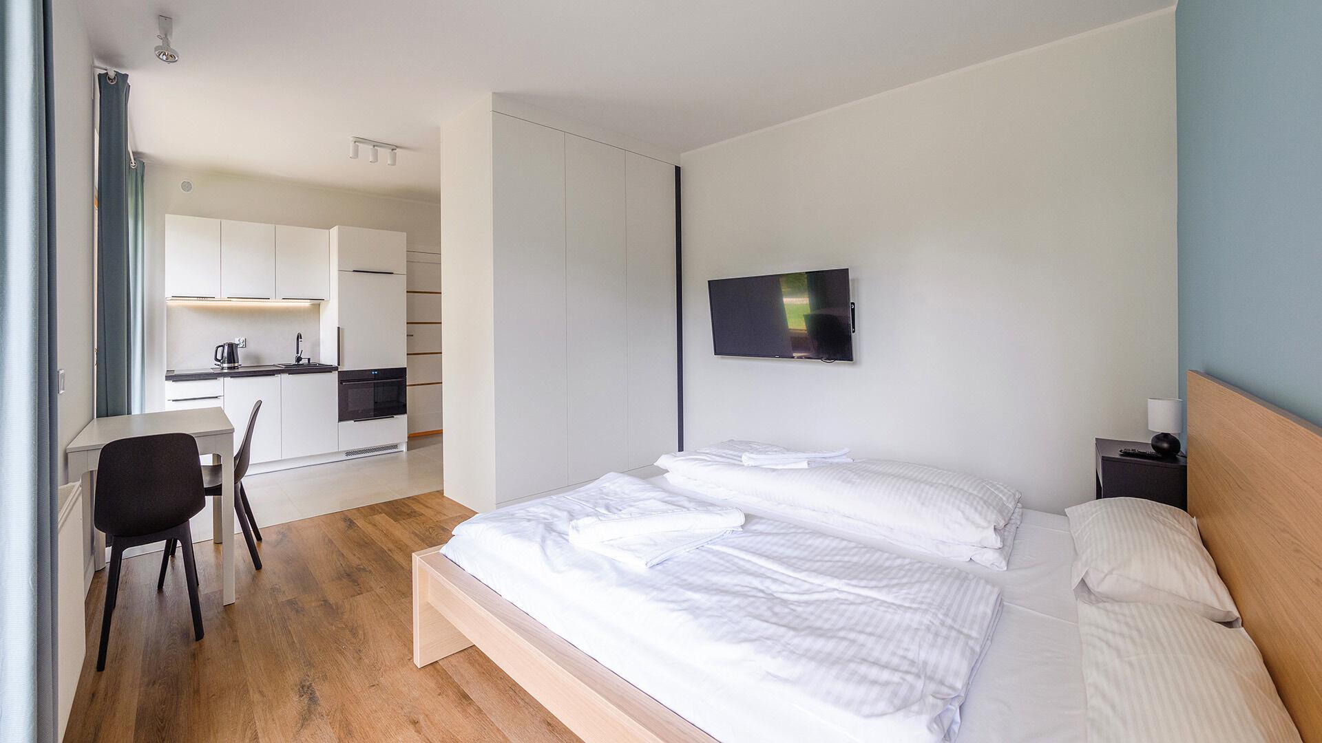 • Die Apartments sind mit Bettwäsche und Handtüchern ausgestattet.