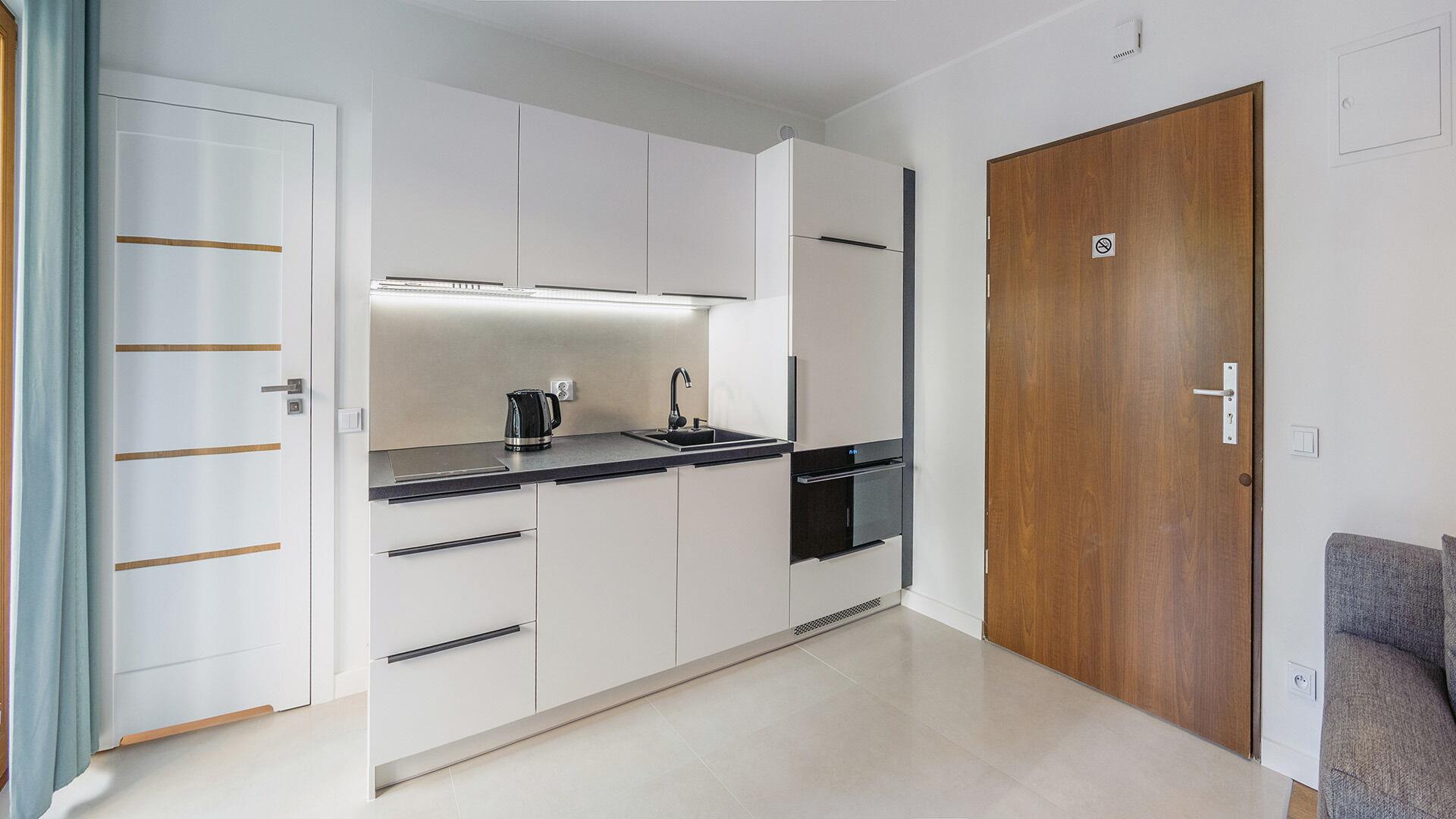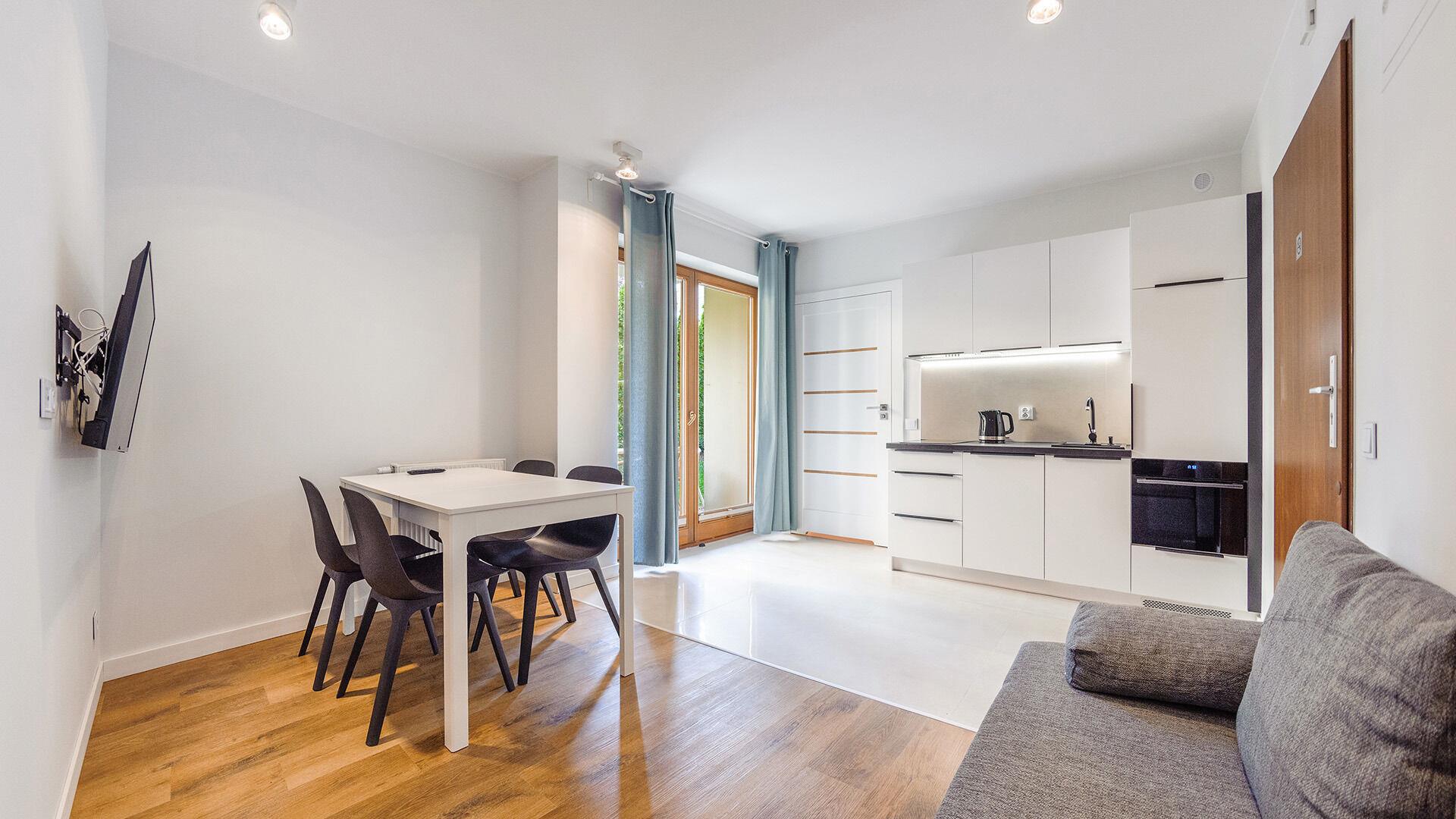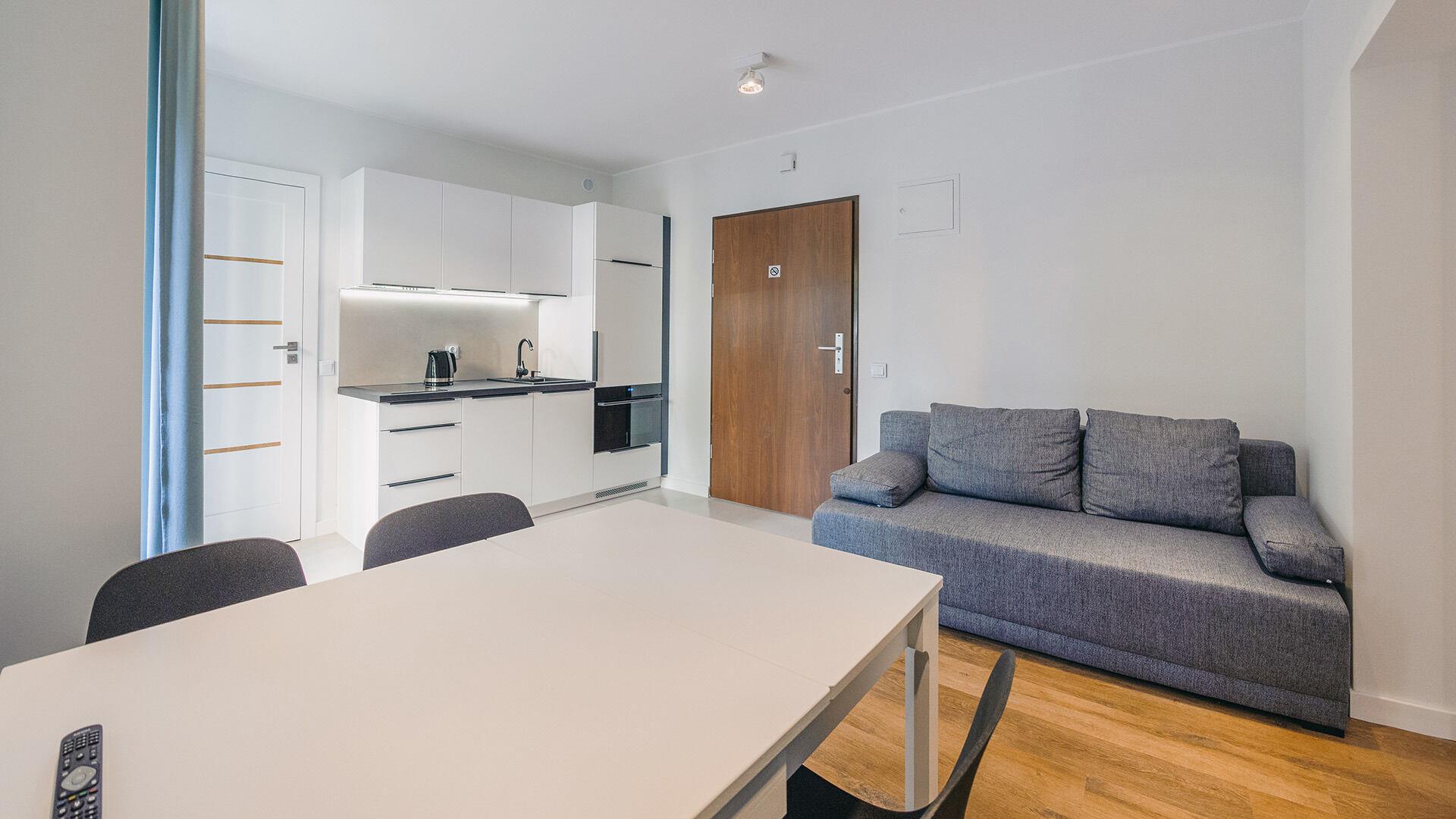 • Haustiere sind in der ausgewählten Wohnung erlaubt. Die Kosten für den Aufenthalt mit einem Haustier betragen 40 PLN pro Tag.