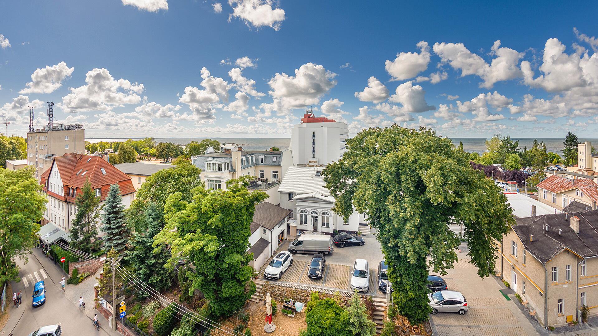Die Apartments befinden sich im Herzen von Miedzyzdroje, in der Nähe des Strandes und des Stadtzentrums. Die Anlage ist eingezäunt und bewacht, was den Gästen Komfort und Sicherheit bietet.
