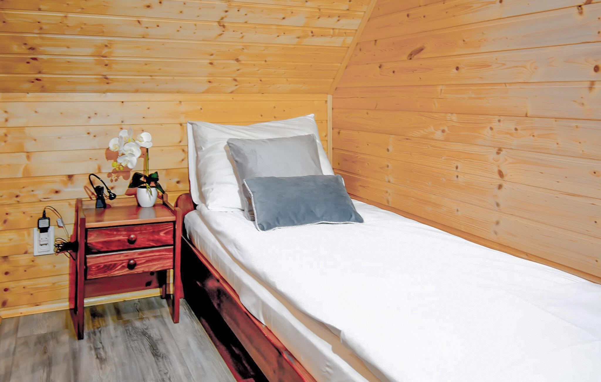 Soveværelse (nr. 1) - 1 Soveplads. (Enkeltseng(e)). 2 Sovepladser. (Dobbeltseng(e)).