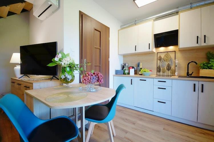 I udkanten af en charmerende kystby er der et familieferiested, der tilbyder overnatning i rækkehuse i flere etager og masser af grønne områder, hvor børn kan spille forskellige spil og aktiviteter. To-etagers feriehuse med terrasser og et sæt havemøbler og grillfaciliteter. I stueetagen er der en komfortabel stue med sovesofa, tv og bord med stole. Stuen er forbundet med et veludstyret køkken. Der er også et badeværelse med bruser i stueetagen. Der er 2 separate soveværelser ovenpå. Der er aircondition med køle- og varmefunktioner. Trådløst internet er tilgængeligt. På centrets indhegnede grund er der en attraktiv legeplads og sikker parkeringsplads (mod gebyr). Prisen for opholdet inkluderer: sengelinned, håndklæder, vandforbrug, aircondition, slutrengøring, internet. Seværdigheder i området: Den smukke strand ved havet kan hurtigt nås til fods eller på cykel (kun 850 m). Mielenko er en lille bygd i udkanten af Mielno, en populær badeby. Der er mange rekreative faciliteter, restauranter og caféer. I nærheden af centrum er der den internationale cykelrute R-10, som giver dig mulighed for nemt og bekvemt at komme på cykel til andre nærliggende kystbyer: Mielno (et større feriested med mange attraktioner, restauranter, større butikker), Chlopy (en lille, historisk fiskerby), Lazy, Sarbinowo, Gaski. 3 km fra centrum er der søen Jamno med marina og udlejning af vandudstyr (pedalbåde, kajakker, robåde). Her er også fiskepladser. Dette er måske ikke et særligt attraktivt område for svømmeentusiaster, men det er et ideelt sted til vandsport (windsurfing, kitesurfing - udlejning og skole) og til fiskeri.