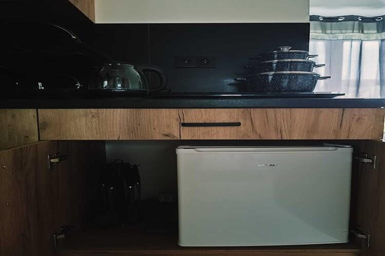 Et hyggeligt, familievenligt resort designet med børnefamilier i tankerne. Her kan du forvente fred og ro. Resortet tilbyder kun et par studiolejligheder i en lille, velholdt bygning. Landsbyens karakter fremmer en dejlig og uforstyrret ferie. Den indhegnede grund tilbyder masser af plads til, at børnene kan lege og have det sjovt. En komfortabel studiolejlighed i stueetagen. Det er et enkelt, stort værelse, der fungerer som både soveværelse og stue. Den har en dobbeltseng, en dobbelt sovesofa, et bord med stole og et tv. Der er et tekøkken og et badeværelse med bruser. Centralvarme. Trådløst internet er tilgængeligt. Studiolejligheden har en terrasse med havemøbler. Den indhegnede og velholdte grund inkluderer parkering, legeplads og legerum, grillplads, cykeludlejning og fælles vaskemaskine. Prisen inkluderer: sengelinned, el- og vandforbrug, parkering, internet og slutrengøring. Den smukke strand ved havet ligger en hurtig gå- eller cykeltur (ca. 1 km) ad en rolig strækning af snedækket sti. Mielenko er en lille bygd i udkanten af Mielno, en populær badeby. Den kan prale af adskillige fritidsfaciliteter, restauranter og caféer. Den internationale cykelsti R-10 løber i nærheden og giver nem og bekvem adgang til andre nærliggende badebyer: Mielno (en større by med mange attraktioner, restauranter og større butikker), Chlopy (en lille, historisk fiskerlandsby), Lazy, Sarbinowo og Gaski. Jamno-søen ligger 2,5 km fra byen og har en lystbådehavn og mulighed for udlejning af vandsportsudstyr (vandcykler, kajakker og robåde). Der er også fiskepladser. Søen er ideel til vandsport (windsurfing, kitesurfing – udlejning og skoler) og for lystfiskere.