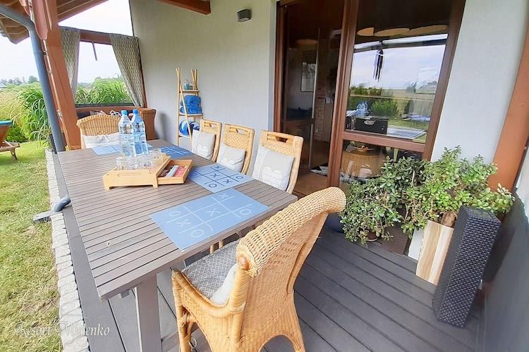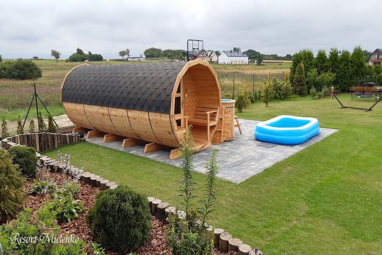 Familieferiestedet ligger i udkanten af ??Mielno - en lille rolig kystby, som er en stille forstad til det meget mere travle feriested Mielno. Stranden ligger ca. 850 m væk. Det rolige centrum af Mielenka ligger kun få skridt væk. I Mielno, cirka 3 km væk, er der mange restauranter, caféer, butikker og alle de attraktioner, der er typiske for et sådant sted. Et meget komfortabelt feriehus ligger midt i et indhegnet, velholdt område tilhørende et lille feriested. Huset er i to etager og har en overdækket terrasse med et sæt komfortable loungemøbler. I stueetagen er der en rummelig stue med stort bord og TV. Der er også en 2-personers fold-out sofa. Stuen er forbundet med et veludstyret køkken. I stueetagen er der desuden soveværelse med dobbeltseng og badeværelse med bruser (der er også vaskemaskine). På første sal er der yderligere 3 soveværelser og et andet badeværelse med bruser. Huset er udstyret med effektiv opvarmning. Trådløst internet er tilgængeligt. Resortet byder på mange attraktioner for gæster, der kommer her. Der er en helårs sauna og en udendørs jacuzzi (inkluderet i prisen for opholdet, tilgængelig for alle resortets gæster). Der er også en cykeludlejning (også elektrisk). Der er en offentlig grillpavillon i haven. Der er anlagt en attraktiv legeplads til de yngste gæster. Prisen for opholdet inkluderer: sengelinned, håndklæder, el- og vandforbrug, sauna, spabad, slutrengøring, internet, parkering, turistskat. Efter anmodning og efter forudgående aftale er det muligt at leje en barneseng til et lille barn og en høj stol (gratis). Den smukke strand ved havet kan hurtigt nås til fods eller på cykel. 3 km fra centrum er der søen Jamno med marina og udlejning af vandudstyr (pedalbåde, kajakker, robåde). Her er også fiskepladser.