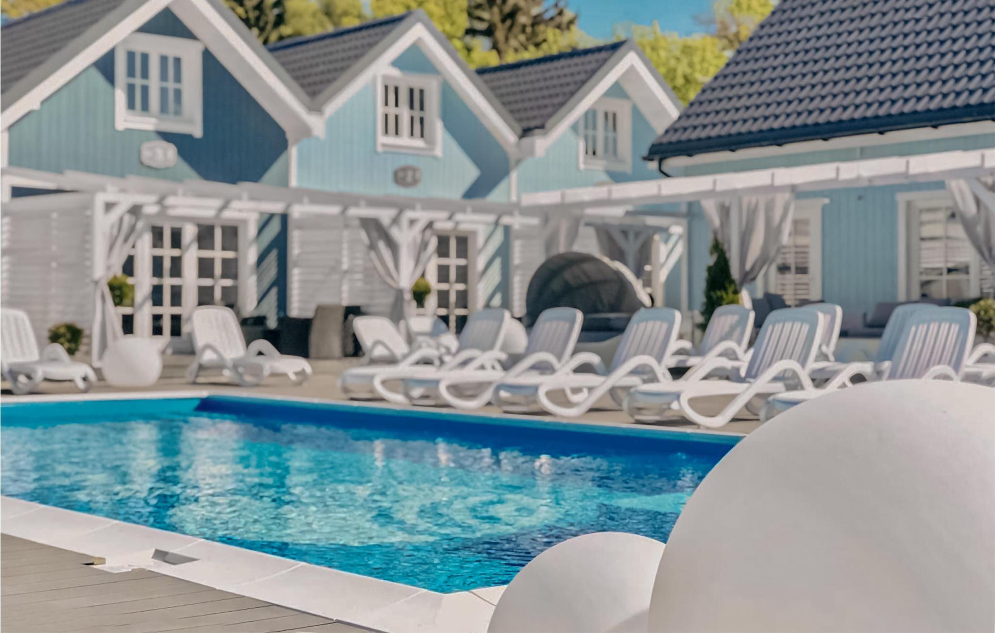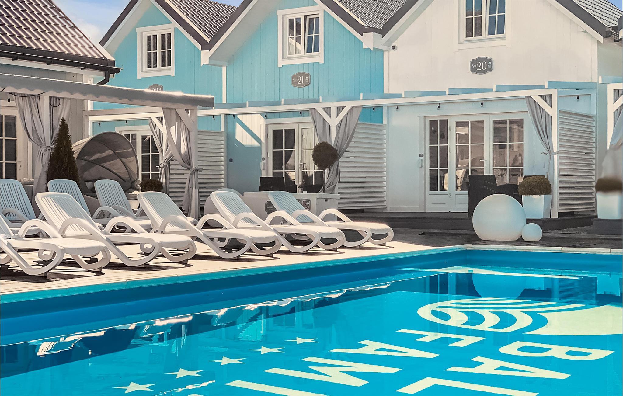Drømmer I om en behagelig ferie ved Østersøen? Så er denne moderne ferielejlighed med udendørs pool måske lige noget for jer.
