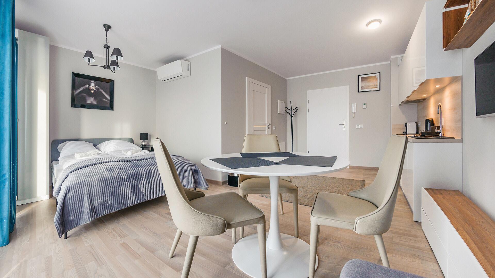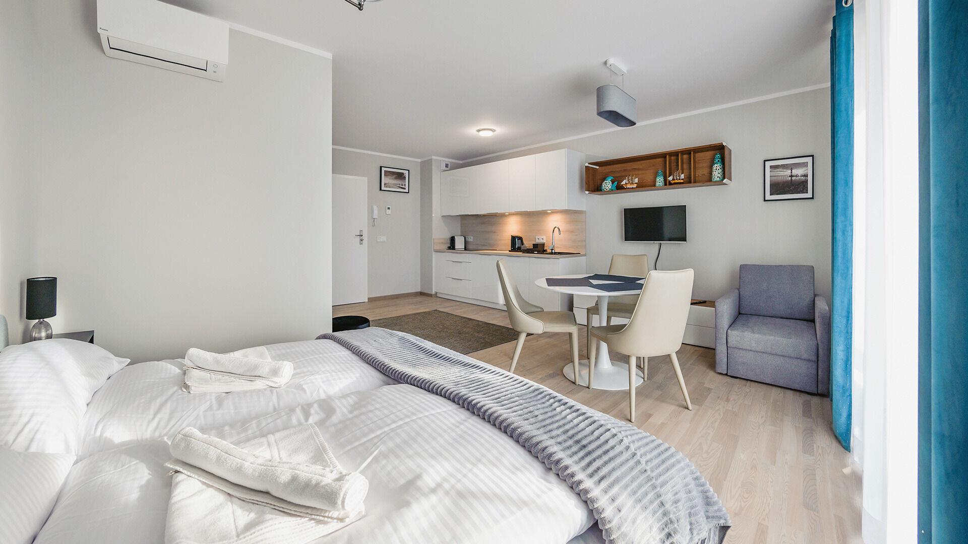 Zu den gewählten Apartments darf man mit dem Hund ankommen. Die zusätzlichen Kosten des Aufenthalts mit einem vierbeinigen Freund betragen 100 PLN (Einzelgebühr). Die Gäste, die den Aufenthalt mit dem Hund planen, bitten wir um eine frühere Kontaktaufnahme mit unserem Service im lokalen Büro.