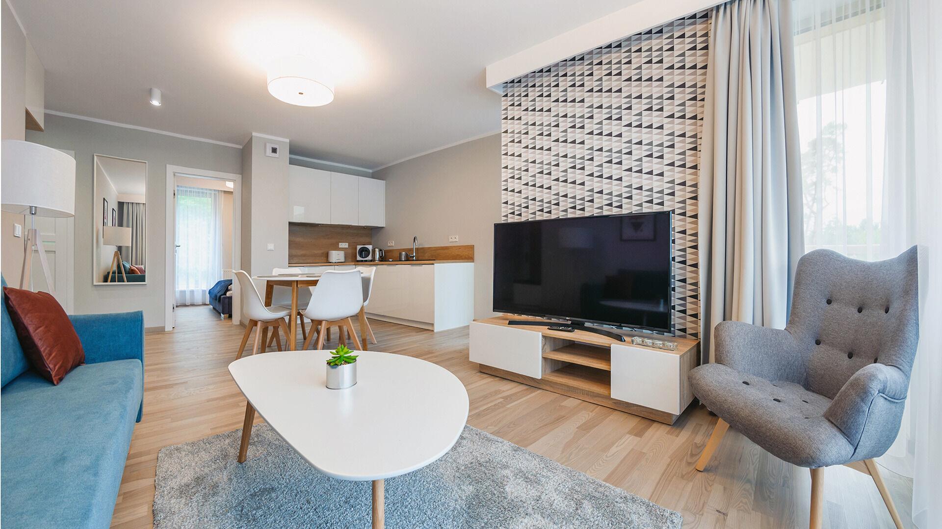 Zu den gewählten Apartments darf man mit dem Hund ankommen. Die zusätzlichen Kosten des Aufenthalts mit einem vierbeinigen Freund betragen 100 PLN (Einzelgebühr). Die Gäste, die den Aufenthalt mit dem Hund planen, bitten wir um eine frühere Kontaktaufnahme mit unserem Service im lokalen Büro.