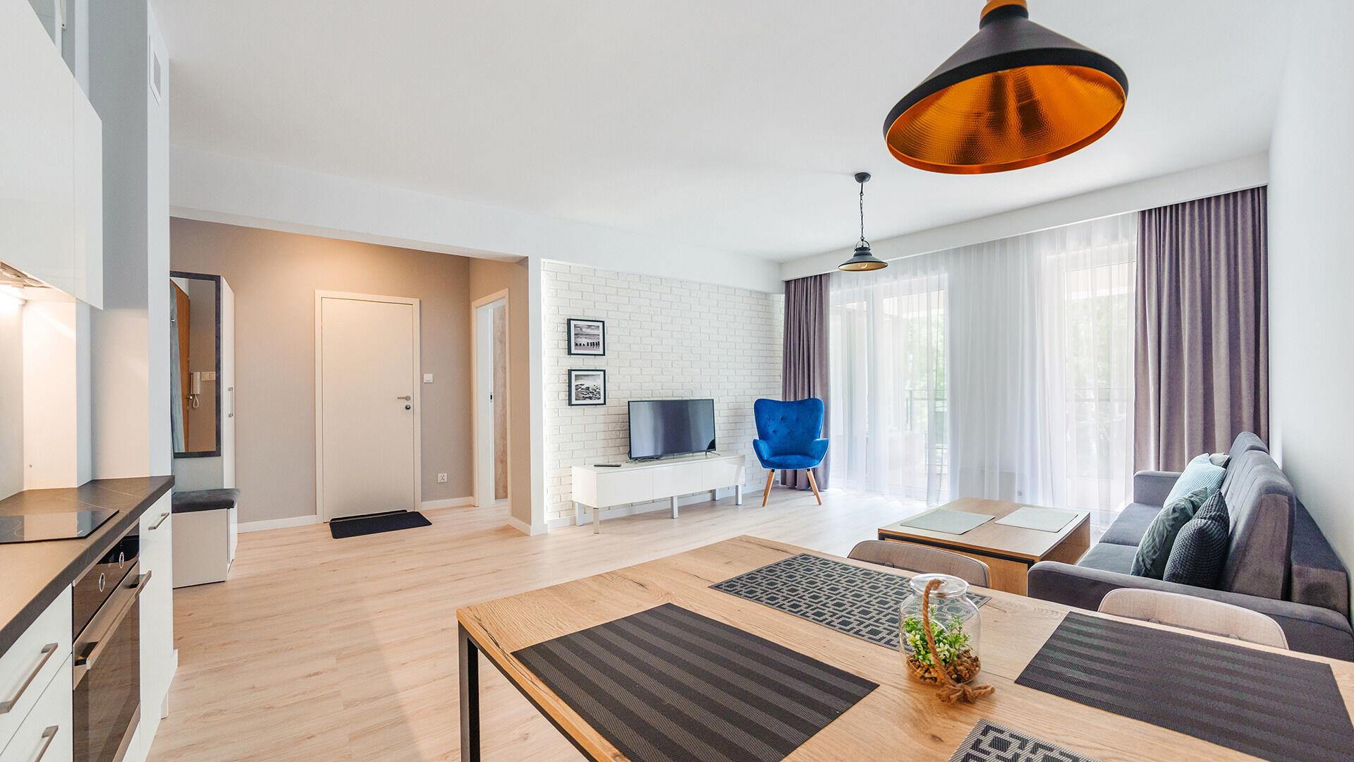 Zu den gewählten Apartments darf man mit dem Hund ankommen. Die zusätzlichen Kosten des Aufenthalts mit einem vierbeinigen Freund betragen 100 PLN (Einzelgebühr). Die Gäste, die den Aufenthalt mit dem Hund planen, bitten wir um eine frühere Kontaktaufnahme mit unserem Service im lokalen Büro.