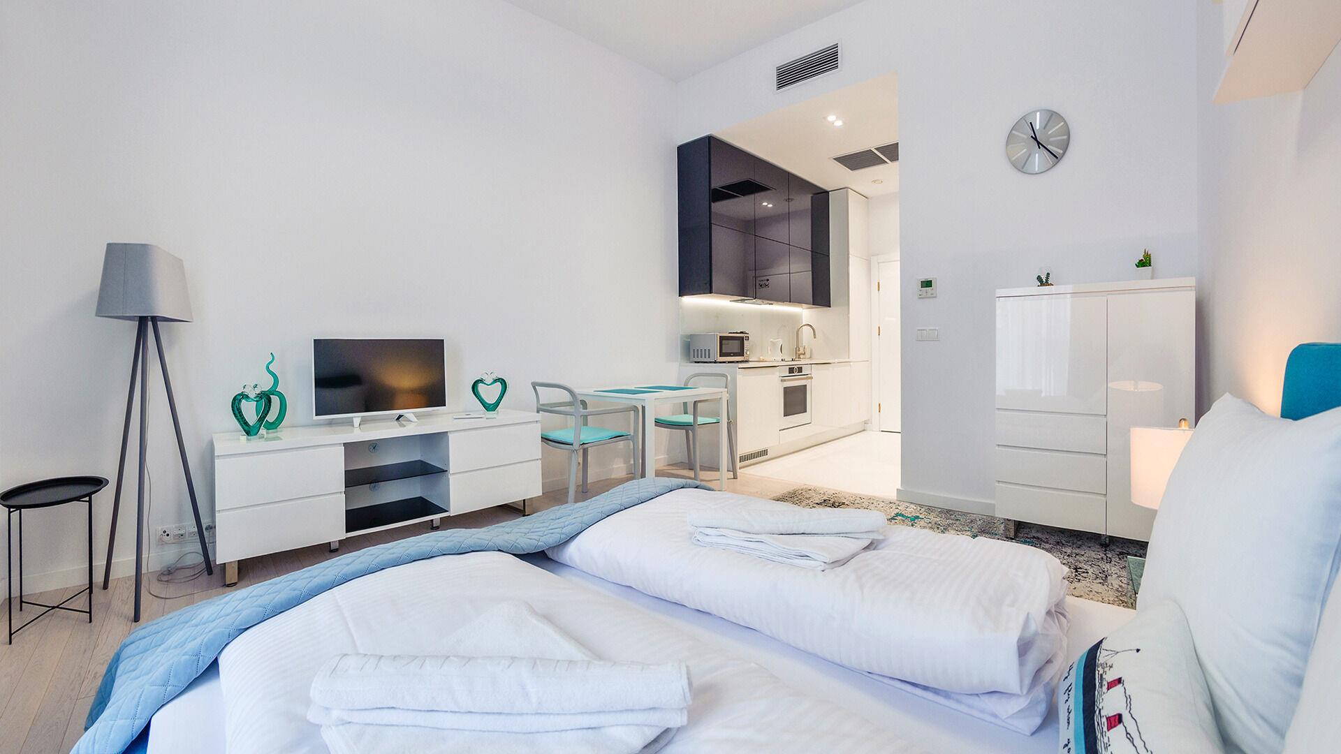 Zu den gewählten Apartments darf man mit dem Hund ankommen. Die zusätzlichen Kosten des Aufenthalts mit einem vierbeinigen Freund betragen 100 PLN (Einzelgebühr). Die Gäste, die den Aufenthalt mit dem Hund planen, bitten wir um eine frühere Kontaktaufnahme mit unserem Service im lokalen Büro.