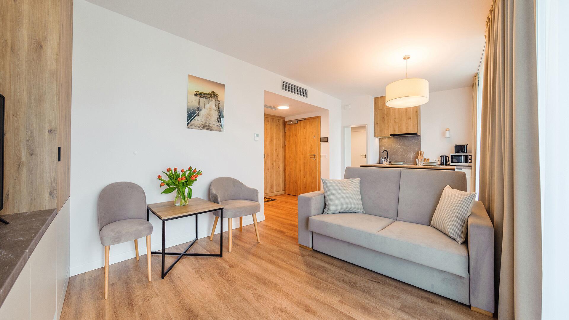 Zu den gewählten Apartments darf man mit dem Hund ankommen. Die zusätzlichen Kosten des Aufenthalts mit einem vierbeinigen Freund betragen 100 PLN (Einzelgebühr). Die Gäste, die den Aufenthalt mit dem Hund planen, bitten wir um eine frühere Kontaktaufnahme mit unserem Service im lokalen Büro.