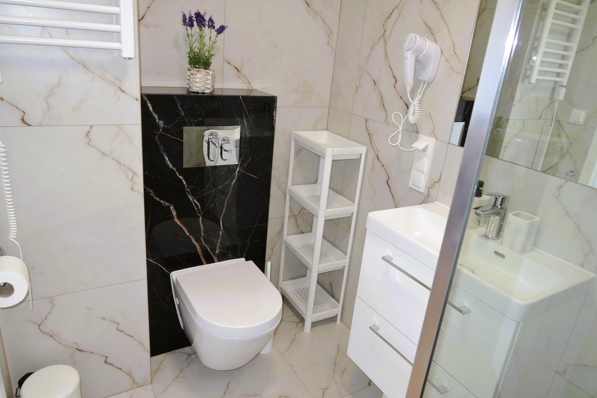 Nye, komfortable, store feriehuse i en rolig og ny del af Niechorze, 600 m fra havet, mellem fyrtårnet og Rewal. Et ideelt sted for børnefamilier. Gæsterne har adgang til en rummelig stue, 2 store soveværelser, et perfekt udstyret køkken og et luksuriøst badeværelse. Bredbåndsinternet, aircondition, havemøbler, grill og parkeringsplads er også til rådighed. Stranden er bred og ubeboet om sommeren, hvilket er en stor fordel. Den lille by Niechorze med et 45 meter højt fyrtårn og en hvid sandstrand er en populær badeby i Vorpommern, mellem Østersøen og den indre sø Liwia, blandt andet som fuglereservat. Den oprindelige fiskerlandsby er omgivet af store skove og grænser op til den stejle kyst, hvorfra man kan beundre en fantastisk panoramaudsigt.