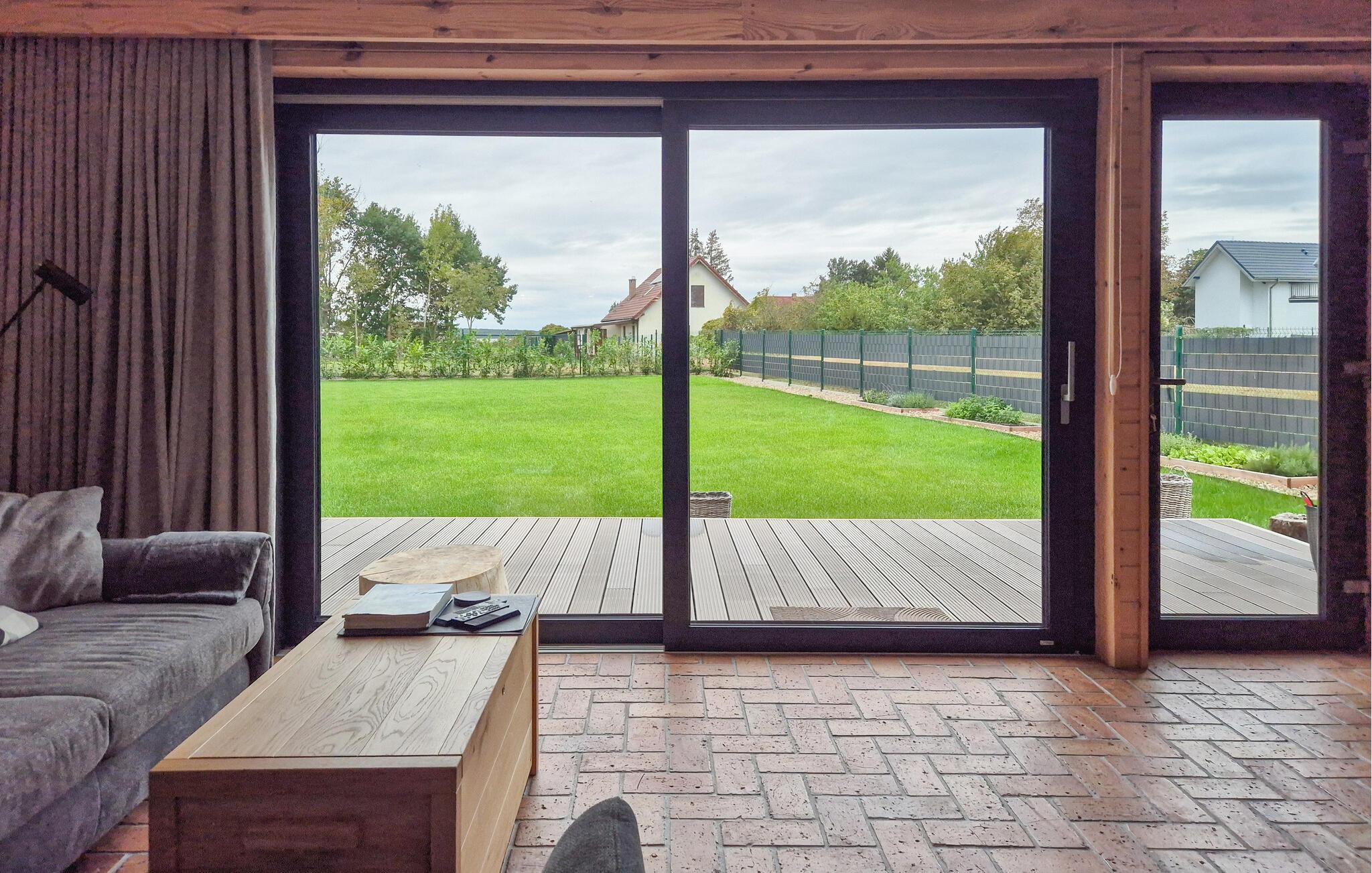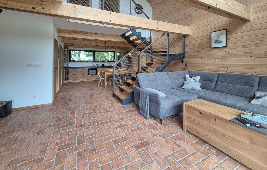 I dette stilfulde feriehus i Nowe Warpno kan I nyde en ferie fuld af komfort og ro. Det moderne design med lyse træelementer og rummelig indretning skaber en afslappende atmosfære. De store panoramavinduer lader masser af sollys strømme ind og skaber en indbydende stemning i rummene, fordelt på to etager. Slap af på terrassen eller i den store have, hvor I kan opleve naturen på tæt hold. Selvom udsigten til søen er begrænset, tilbyder de to gratis SUP-boards (Stand-Up-Paddle) masser af sjov på vandet for aktive feriegæster.