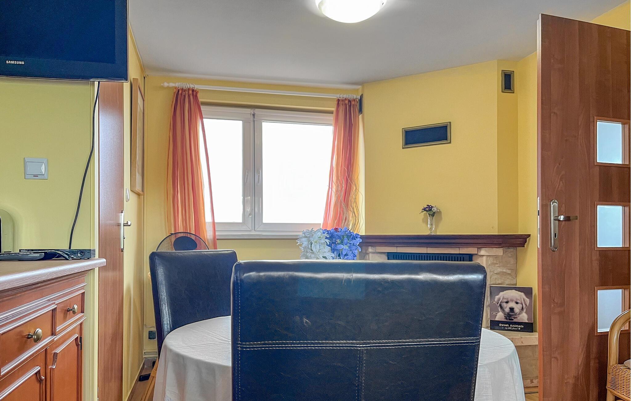 Oplev en særlig ferie i dette iøjnefaldende designede feriehus, der er noget særligt med sit velindrettede interiør og rolige beliggenhed. Huset ligger i grønne omgivelser nær den polsk-tyske grænse. Sæt jer til rette i den åbne stue og spisestue og nyd den hyggelige atmosfære. Slap af i de komfortable sofaer, se tv sammen eller spil brætspil, og nyd den venlige atmosfære i jeres feriehus.