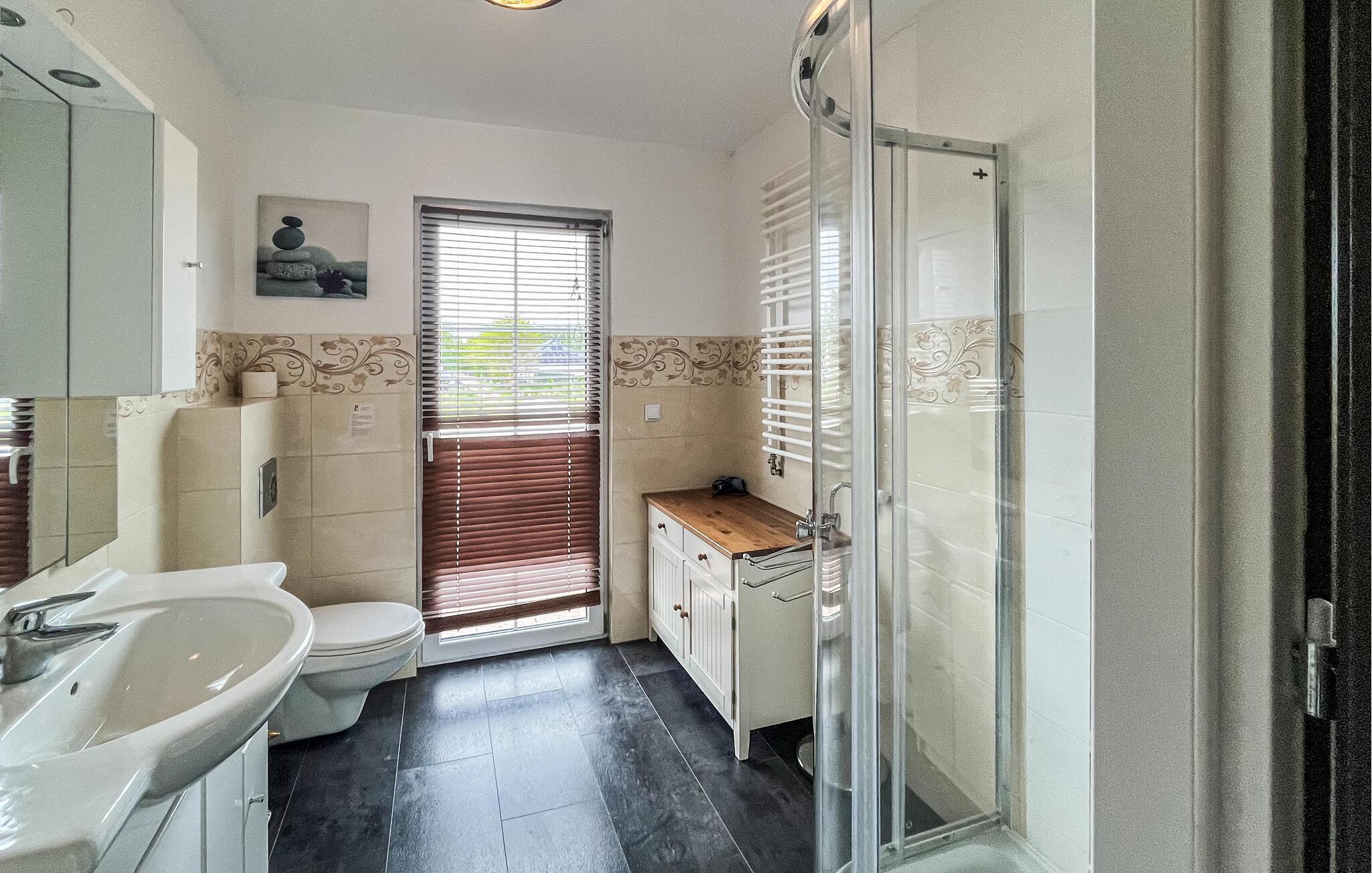 Glæd jer til en afslappende ferie i et kærligt designet feriehus, der er noget særligt med sit unikke farveskema og rolige beliggenhed omgivet af natur. Beliggende nær den polsk-tyske grænse tilbyder dette hus et oplagt tilflugtssted. Slap af i den åbne stue, sæt jer på de komfortable polstrede møbler, og sæt hverdagen på pause med en film eller et brætspil.