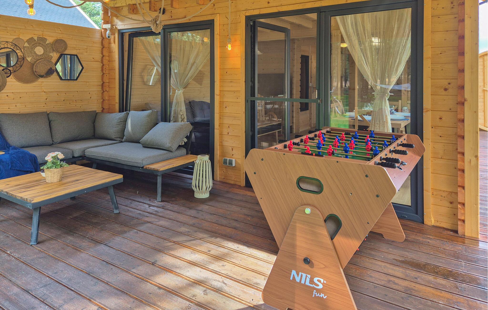 Efter en aktiv dag inviterer den beroligende tøndesauna jer til at slappe af. Inde i huset finder I en lys opholdsstue, der skaber en rar atmosfære med sin charmerende træstil. Det moderne køkken byder på alt, hvad I skal bruge til at tilberede lækre måltider sammen. Nyd jeres måltider ved det store spisebord, som giver plads til alle, og afslut dagen med en god snak og en hyggelig omgang spil.