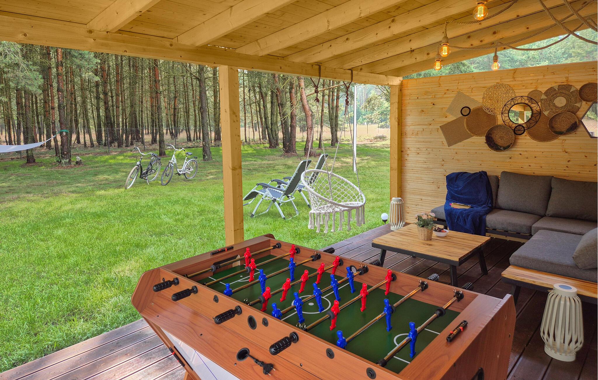 Sjov og afslapning venter jer i dette indbydende feriehus i Nowe Warpno. Familier og vennegrupper vil finde den helt rigtige atmosfære her til en dejlig ferie. Nyd de fredelige omgivelser og slap af på den rummelige veranda. Find jer godt til rette i det hyggelige opholdsområde eller udfordr familien til et spil bordfodbold. Forskellige fritidsaktiviteter som petanque og volleyball giver variation, mens de yngste gæster kan erobre de mange legeredskaber i haven.