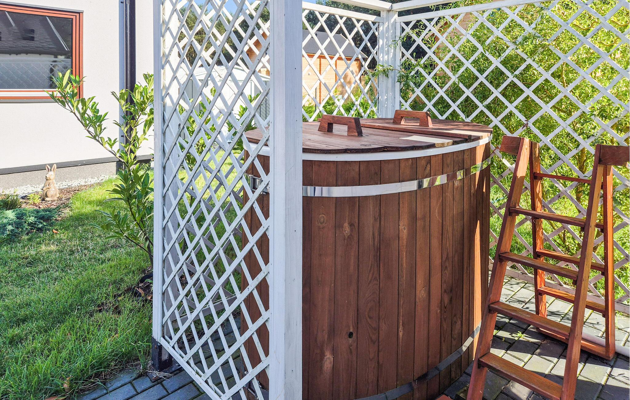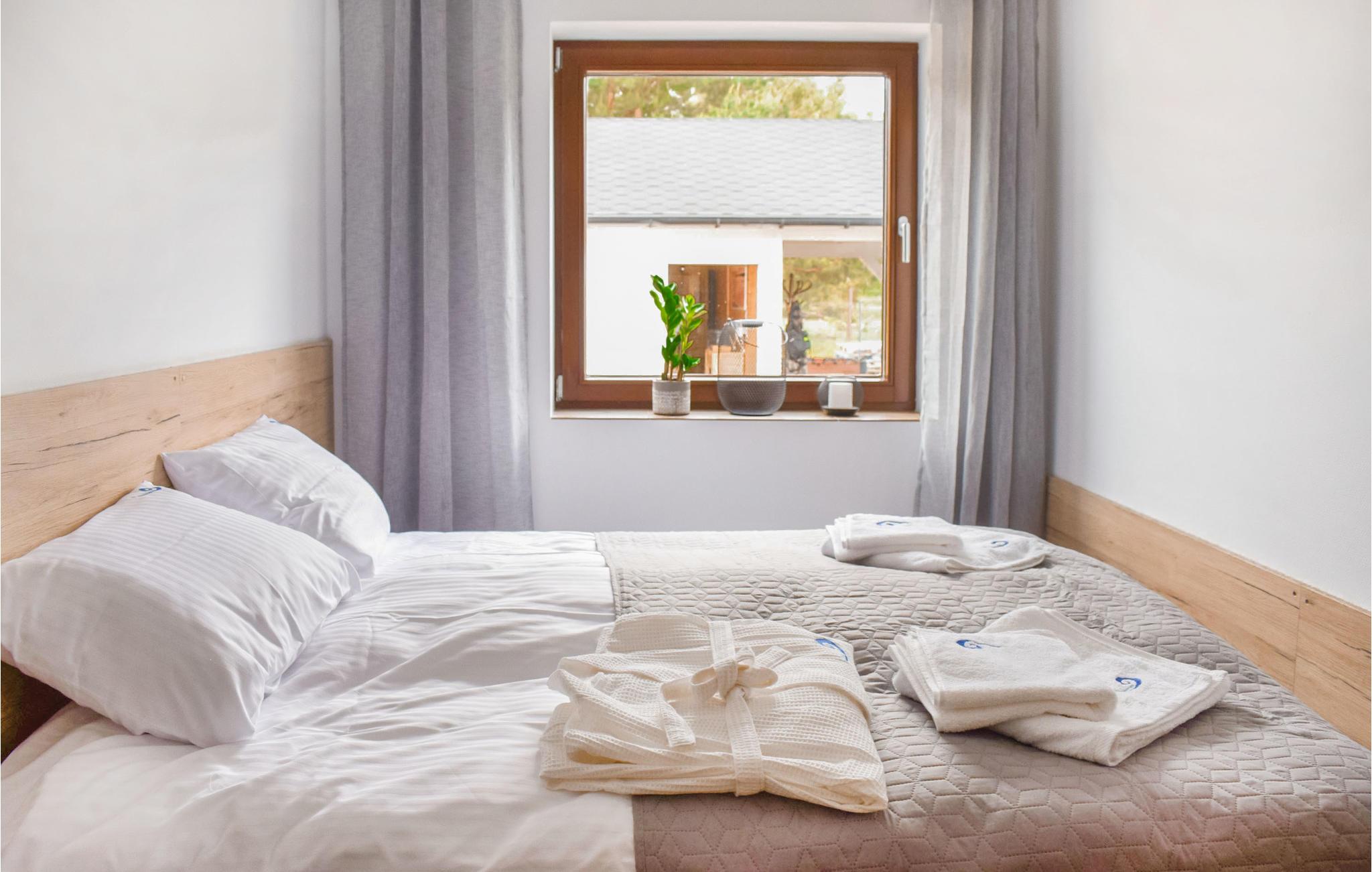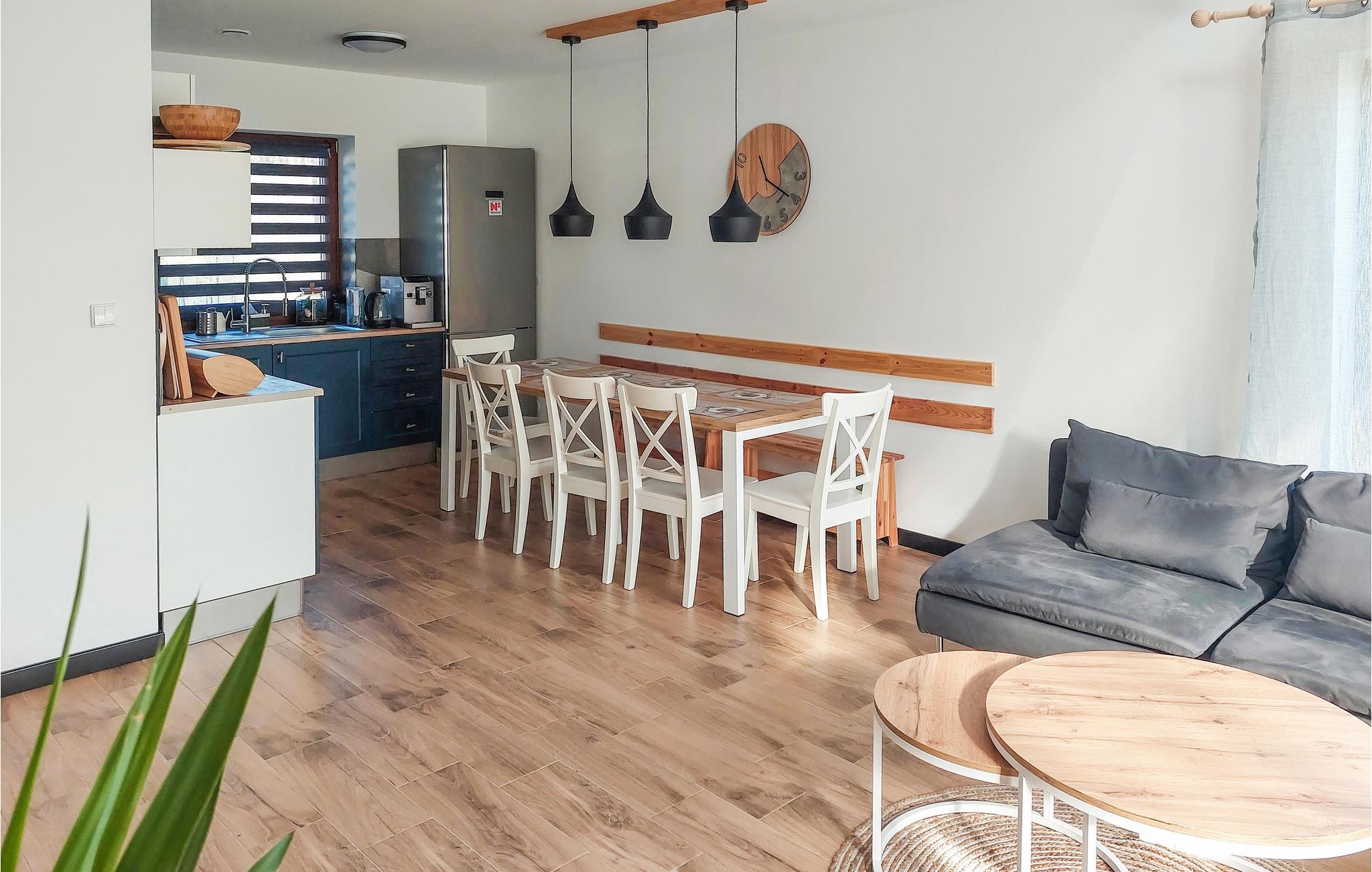 Dette rummelige feriehus har plads til 10 personer, som kan se frem til at tilbringe en dejlig ferie ved Szczecin-lagunen. Her kan I slappe af og skabe skønne ferieminder sammen. Huset er meget komfortabelt udstyret med moderne møbler og byder på mange hyggelige steder at læne sig tilbage, læse bøger og samles. Brug saunaen til at få varmen efter nogle sjove timer ved vandet eller til at løsne op i de ømme ben efter en dag med eventyr. På terrassen kan I nyde de milde sommeraftener med en kølig drink.