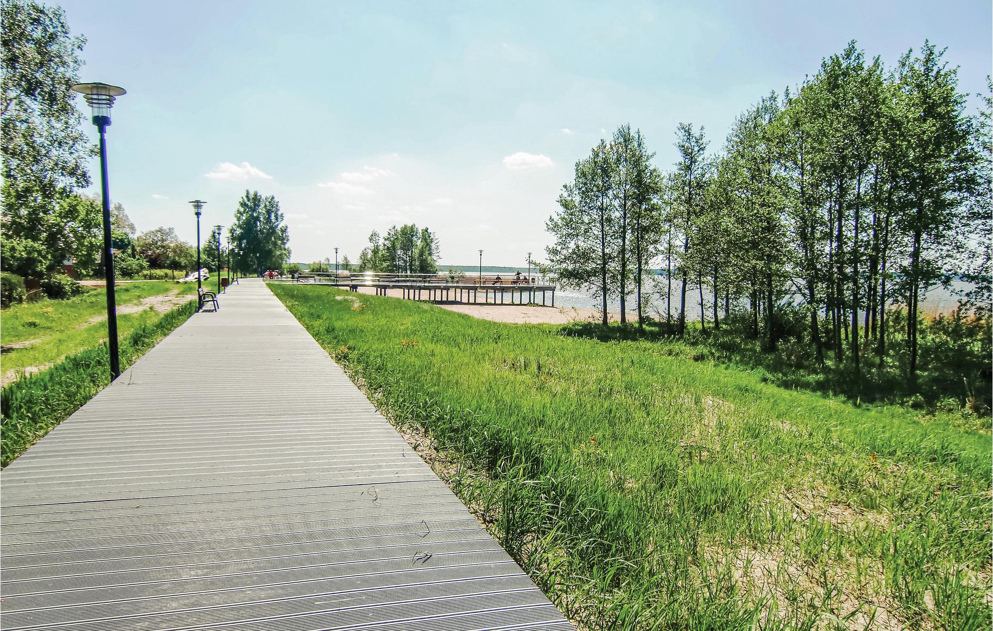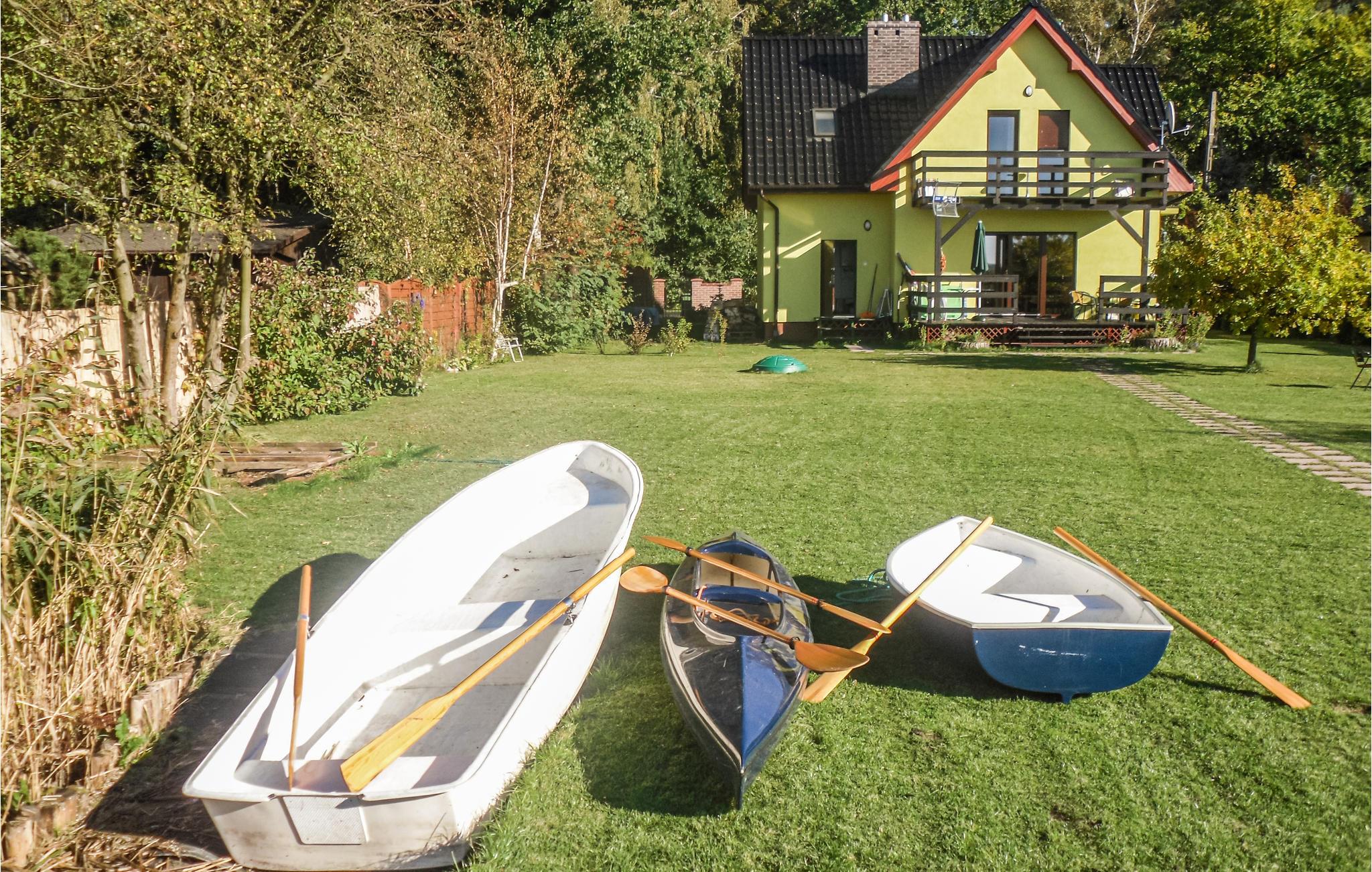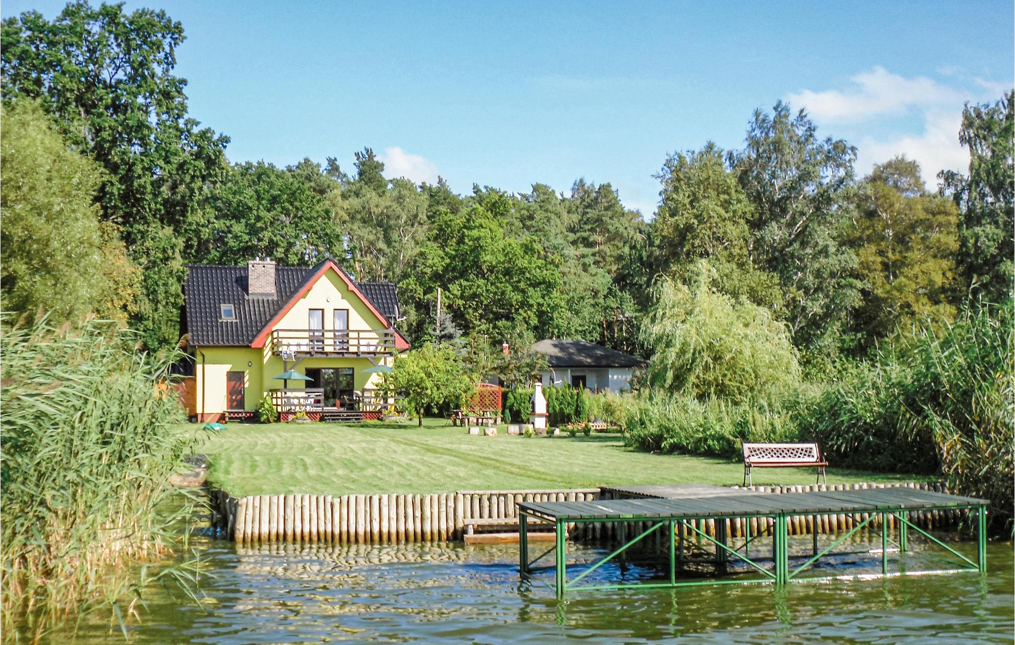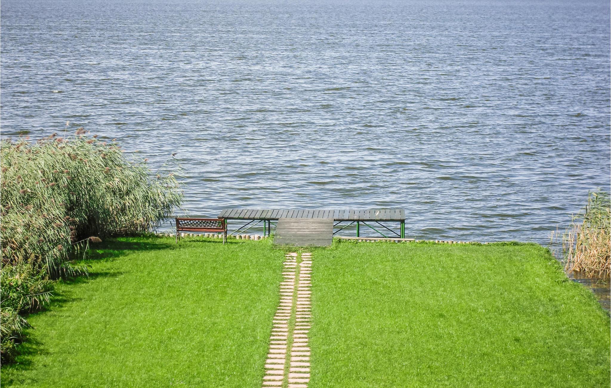 Hele året kan I holde ferie i dette feriehus, der ligger på en stor lukket naturgrund lige ned til vandet. Huset er moderne indrettet og har hele tre balkoner. I stueplan står en kamin, som I kan tænde op i og nyde synet af det knitrende flammer og slappe af i varmen der hurtigt breder sig. Far terrassen er der en herlig panoramaudsigt ud over Neuwarper søen. Her er der god plads til storfamilien, eller til flere familier der vil holde ferie sammen. Her er både sauna, kano og to robåde – det hele er gratis og følger med huset. De helt rigtige omgivelse for lystfiskere, desuden er Stettiner Haff et populært sted at surfe og dyrke andre former for vandsport. Fra december til marts er anløbsbroen taget ned.