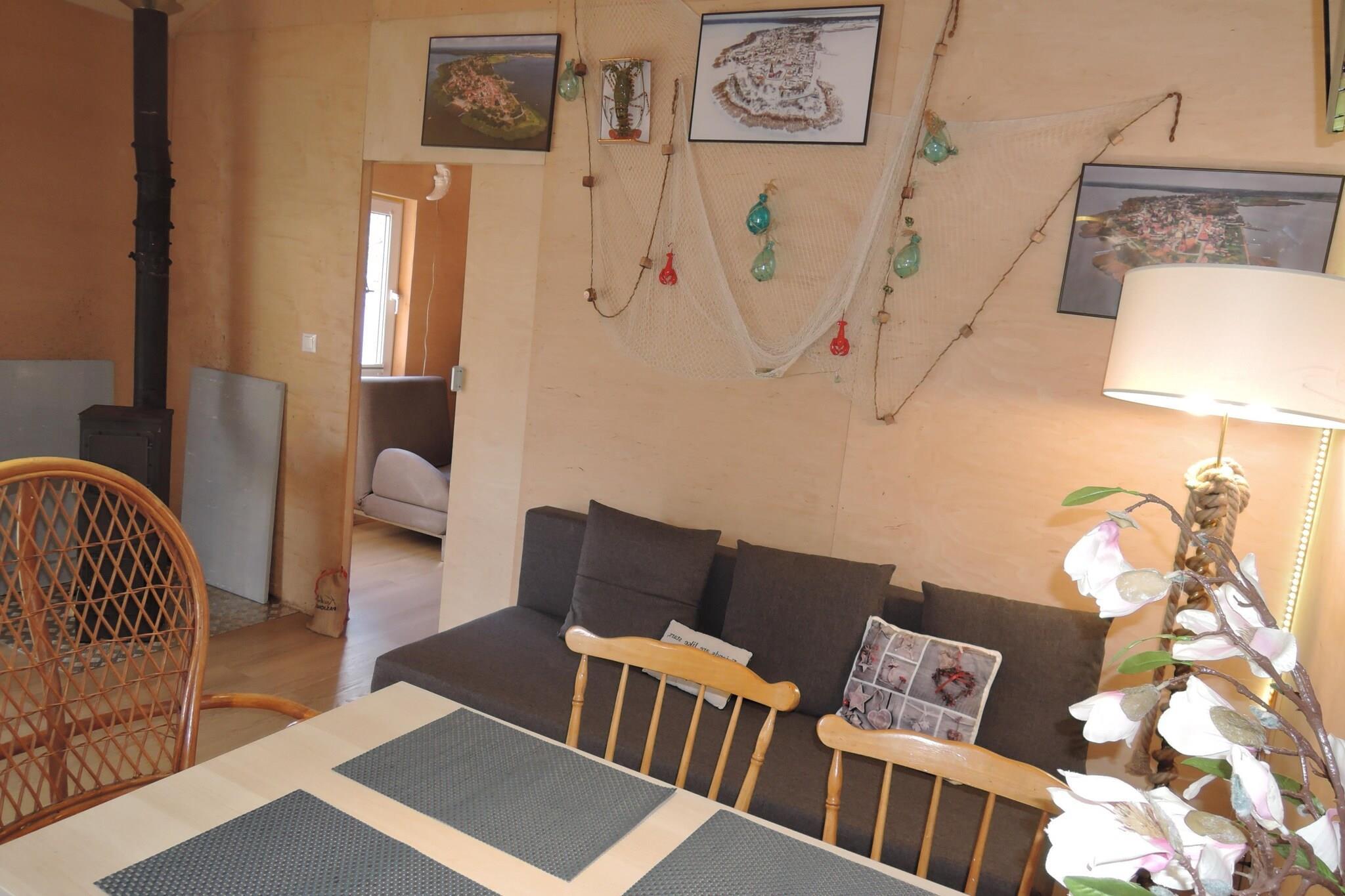 Fritliggende feriehus i maleriske Nowe Warpno. Her kan I tilbringe en afslappende ferie i den friske luft, for en overdækket terrasse og en grillplads inviterer jer til at tilbringe timer sammen. I køligere vejr eller om aftenen, tag en afslappet spadseretur til havnen og læg planer for næste dags ferie. Nowe Warpno er en rolig lille by i det vestlige Pommern. Fredssøgende og naturelskere vil få noget for pengene i den uberørte natur. Aktiviteter i nærheden: Fra dit sommerhus er der kun få minutter til byens centrum. Man kan fiske mange steder omkring havnen og der er også en fiskerestaurant. Du kan også udforske de naturlige omgivelser på lange cykelture Mobilitet: Ikke egnet til personer med begrænset mobilitet.