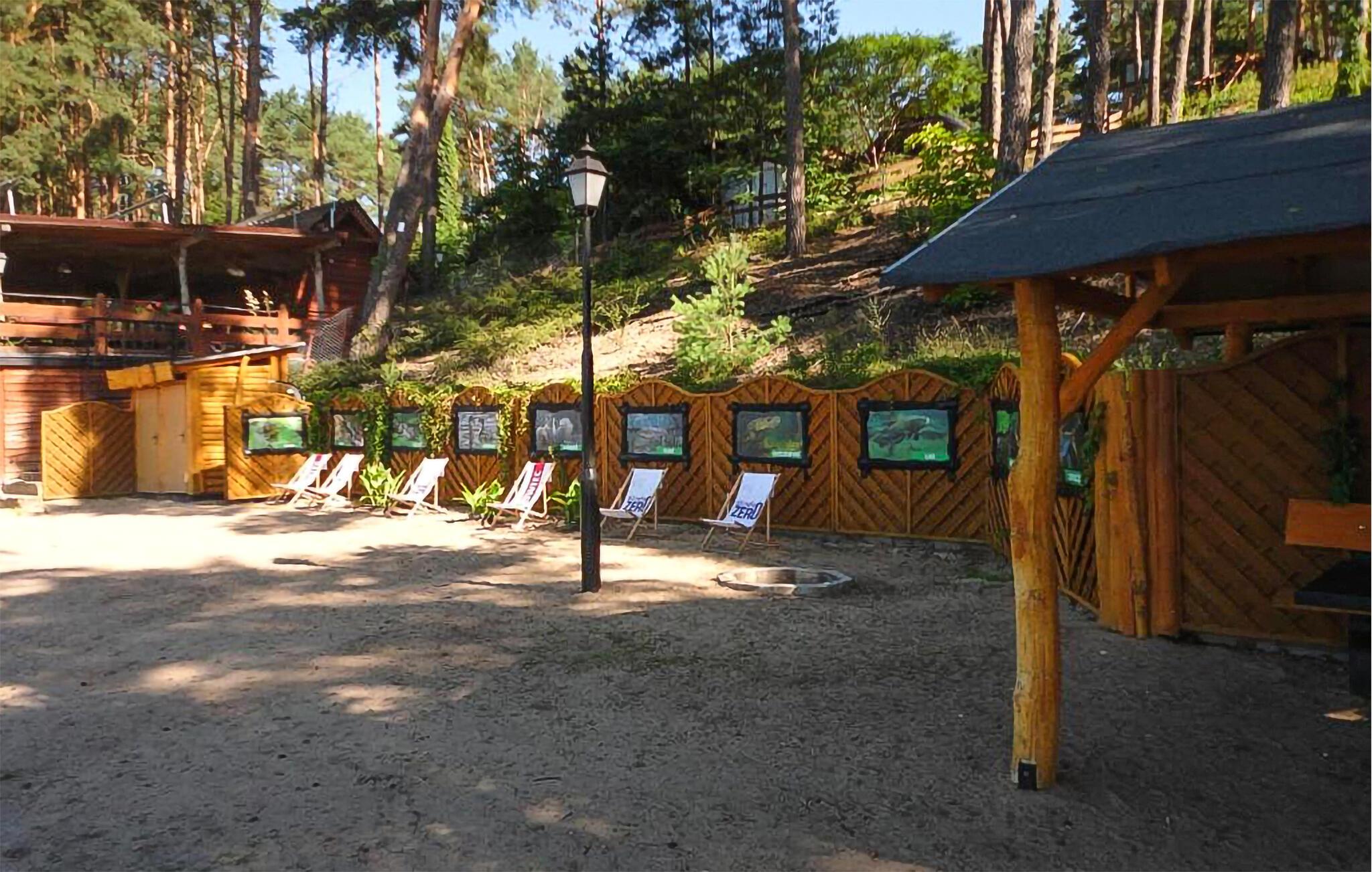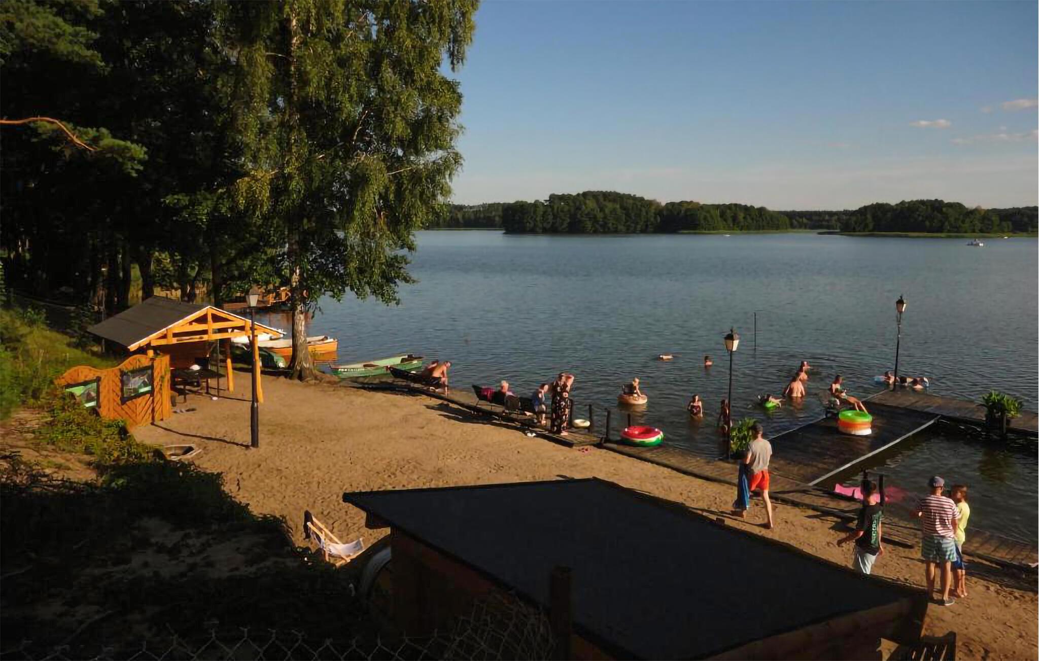 Tilbring masser af tid udendørs og nyd det rummelige fælles strandområde ved Ocypel-søen. Slap af på den overdækkede terrasse med havemøbler eller tilbered et måltid sammen på grillen. Om aftenen kan I tænde et bål ved bålstedet og lade dagen forsvinde blidt. Lad børnene lege i legehuset og med det andet legeredskab. Gå til badebroen, og hop direkte i det klare vand. Lej et SUP-board, kano eller motorbåd, og udforsk søen fra vandet.