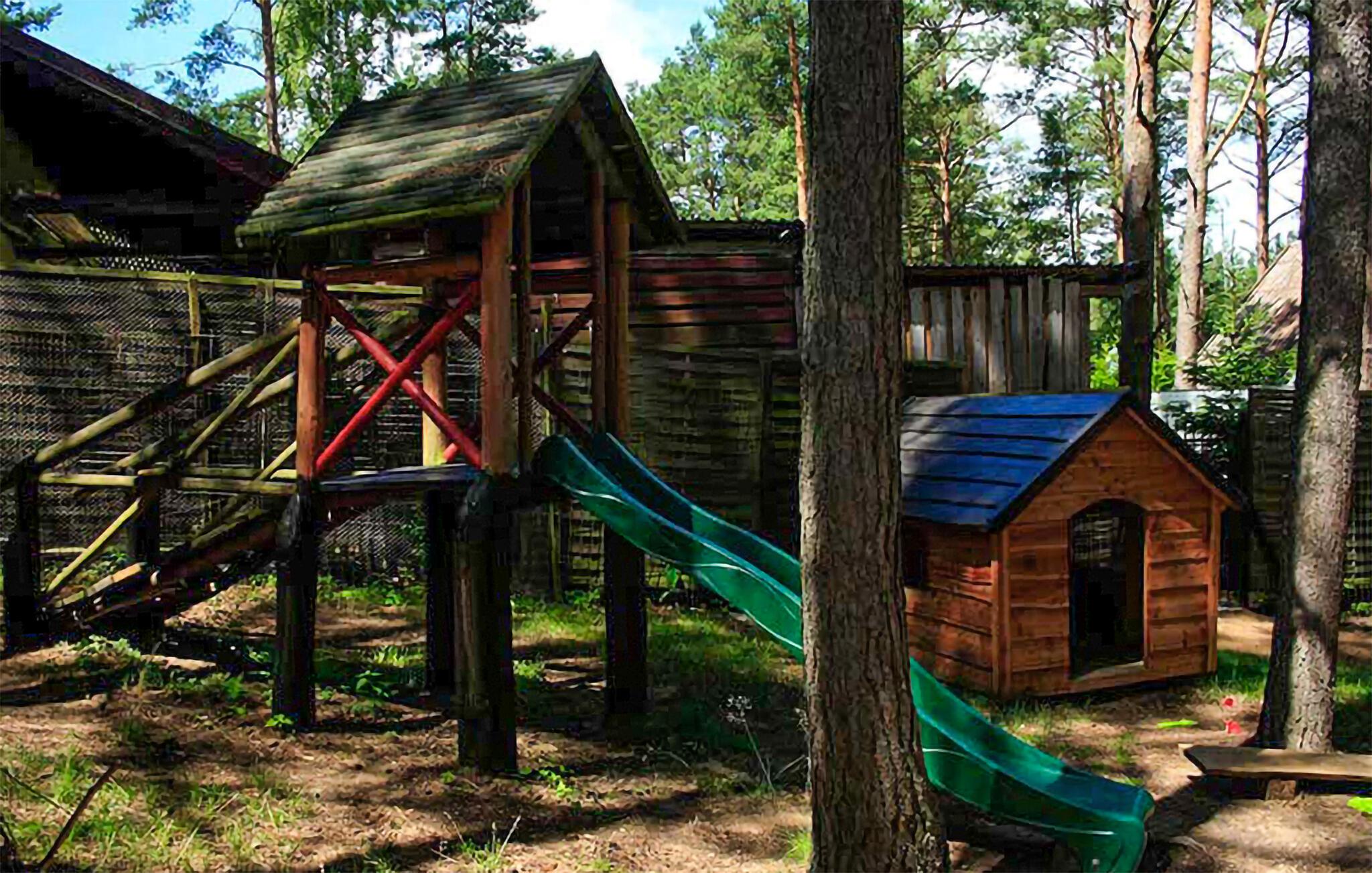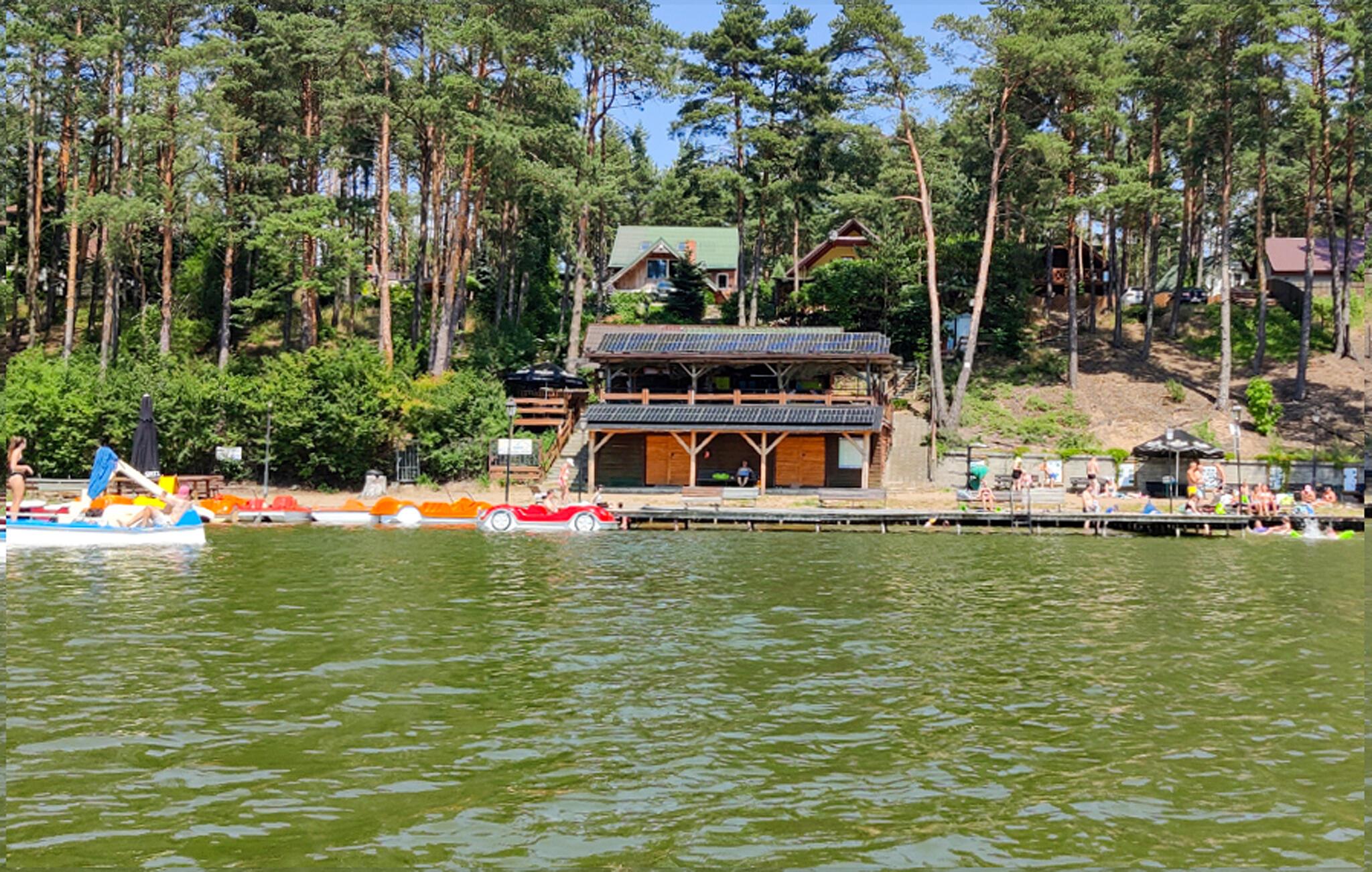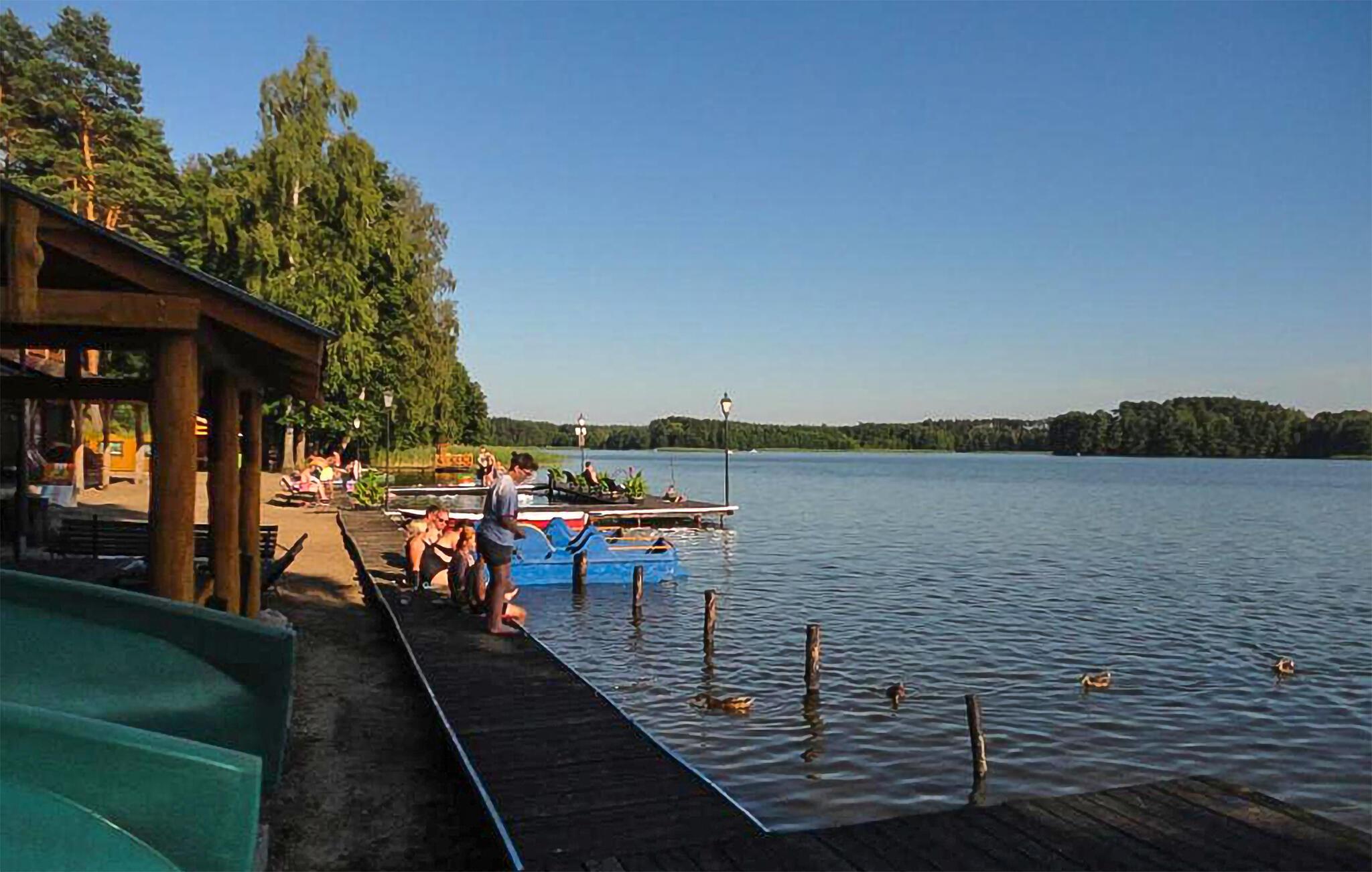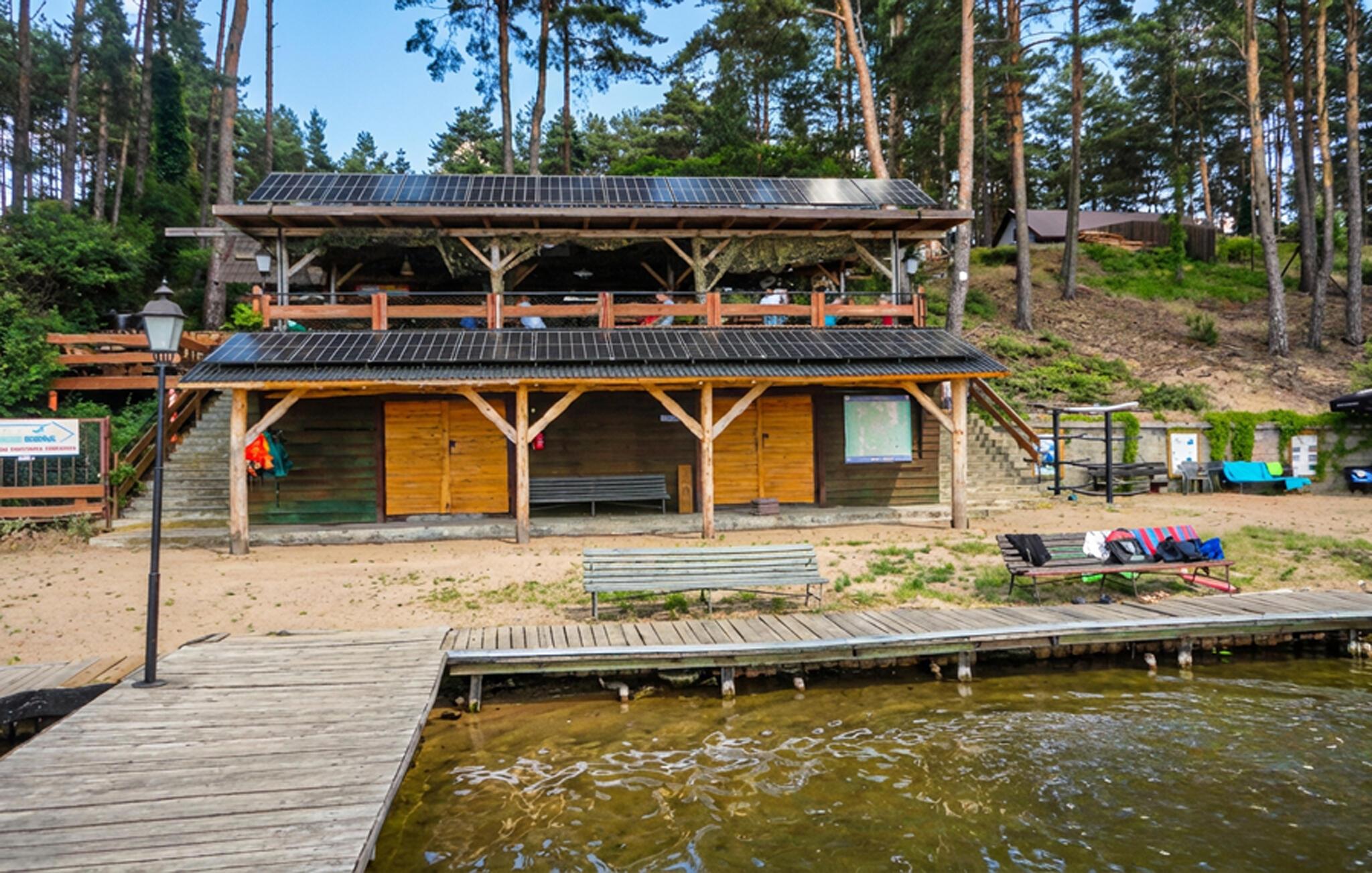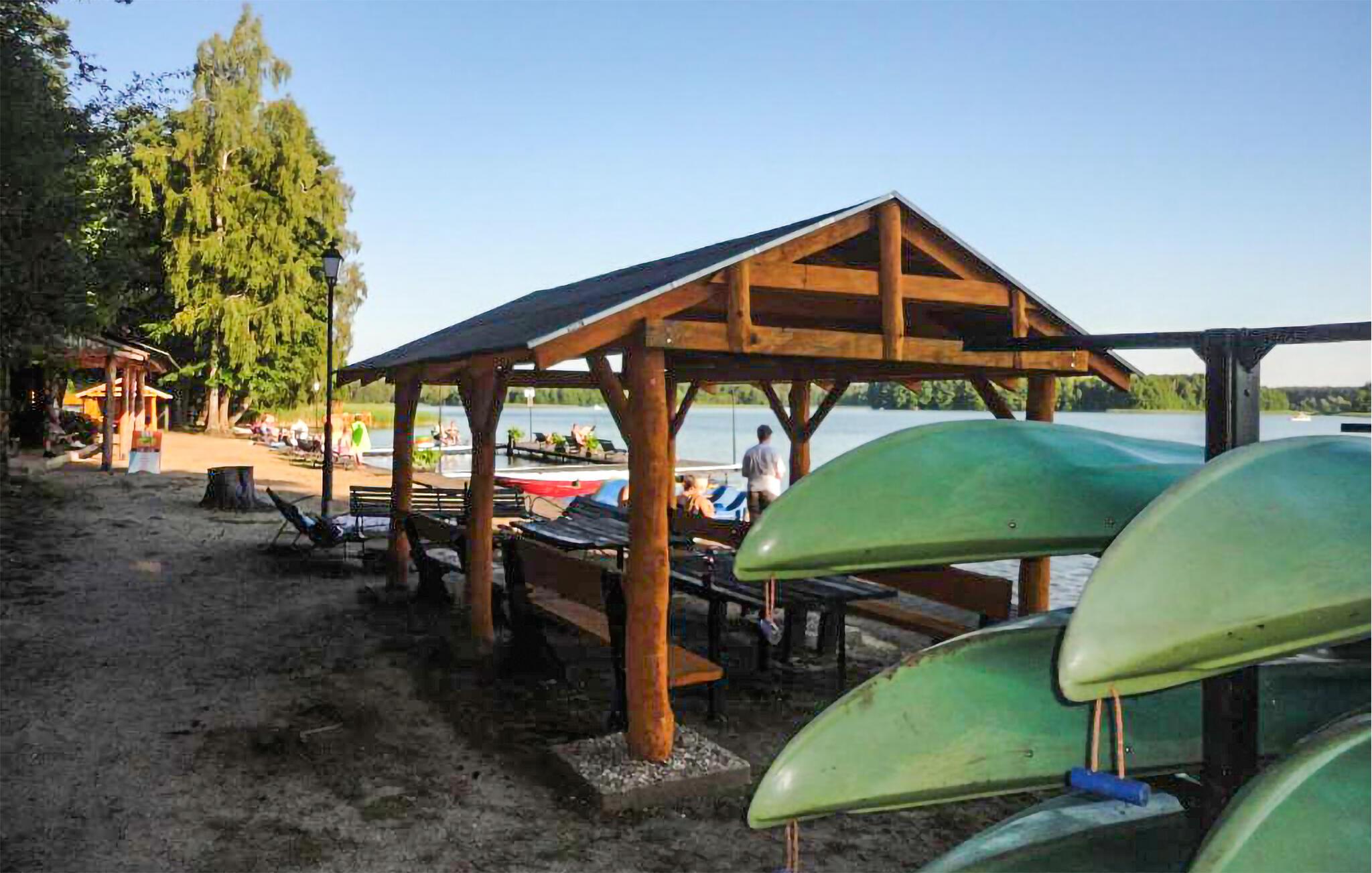 Tilbring masser af tid udendørs og nyd det rummelige fælles strandområde ved Ocypel-søen. Slap af på den overdækkede terrasse med havemøbler eller tilbered et måltid sammen på grillen. Om aftenen kan I tænde et bål ved bålstedet og lade dagen forsvinde blidt. Lad børnene lege i legehuset og med det andet legeredskab. Gå til badebroen, og hop direkte i det klare vand. Lej et SUP-board, kano eller motorbåd, og udforsk søen fra vandet.