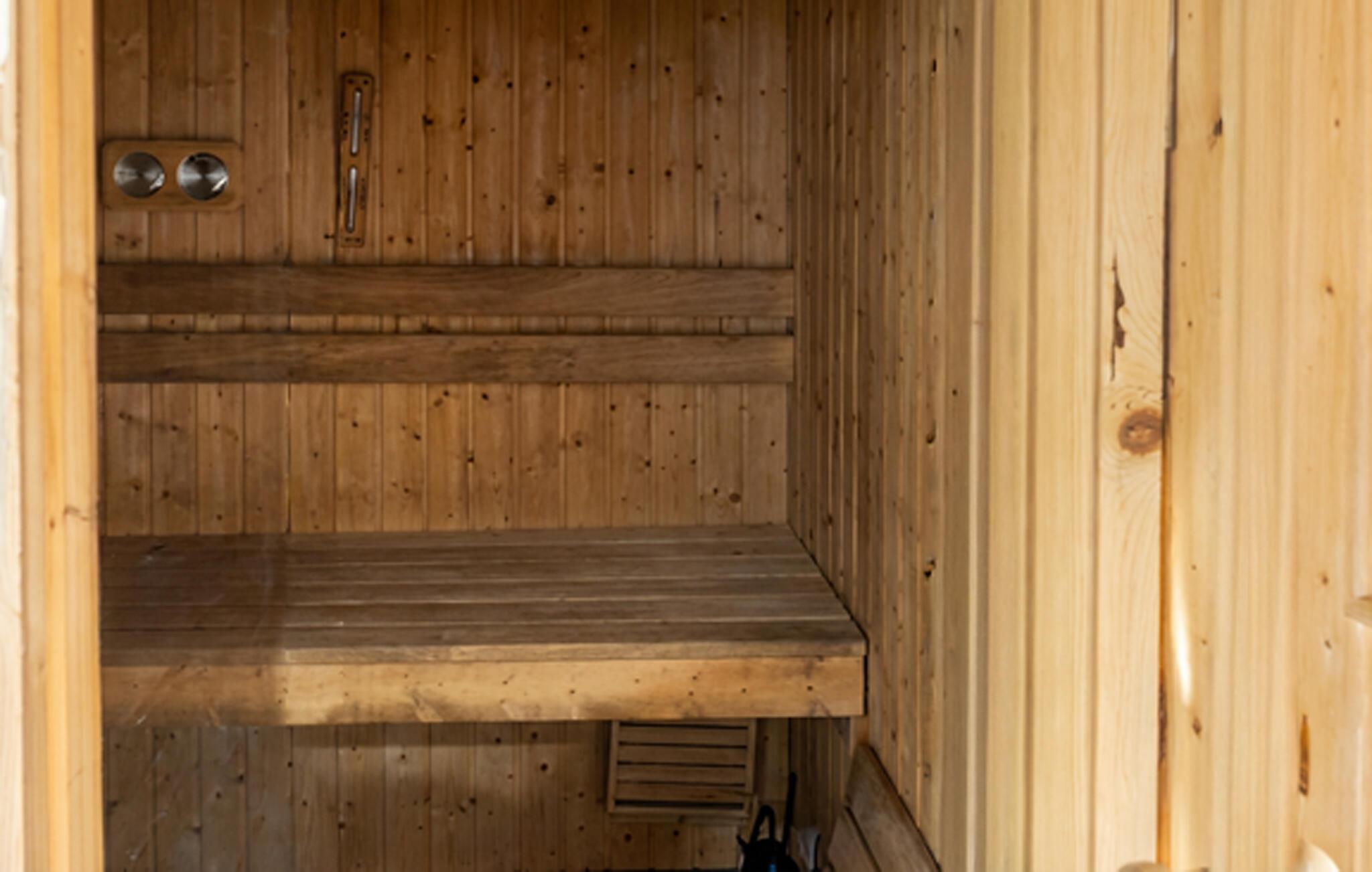 Oplev det indbydende interiør med masser af træ, der skaber en varm og rolig atmosfære. Find jer til rette i den hyggelige opholdsstue med sofa eller brug spiseområdet til fælles måltider. Tilbered enkle måltider i det åbne tekøkken. Slap yderligere af i den fælles sauna, der giver beroligende varme efter en aktiv dag.