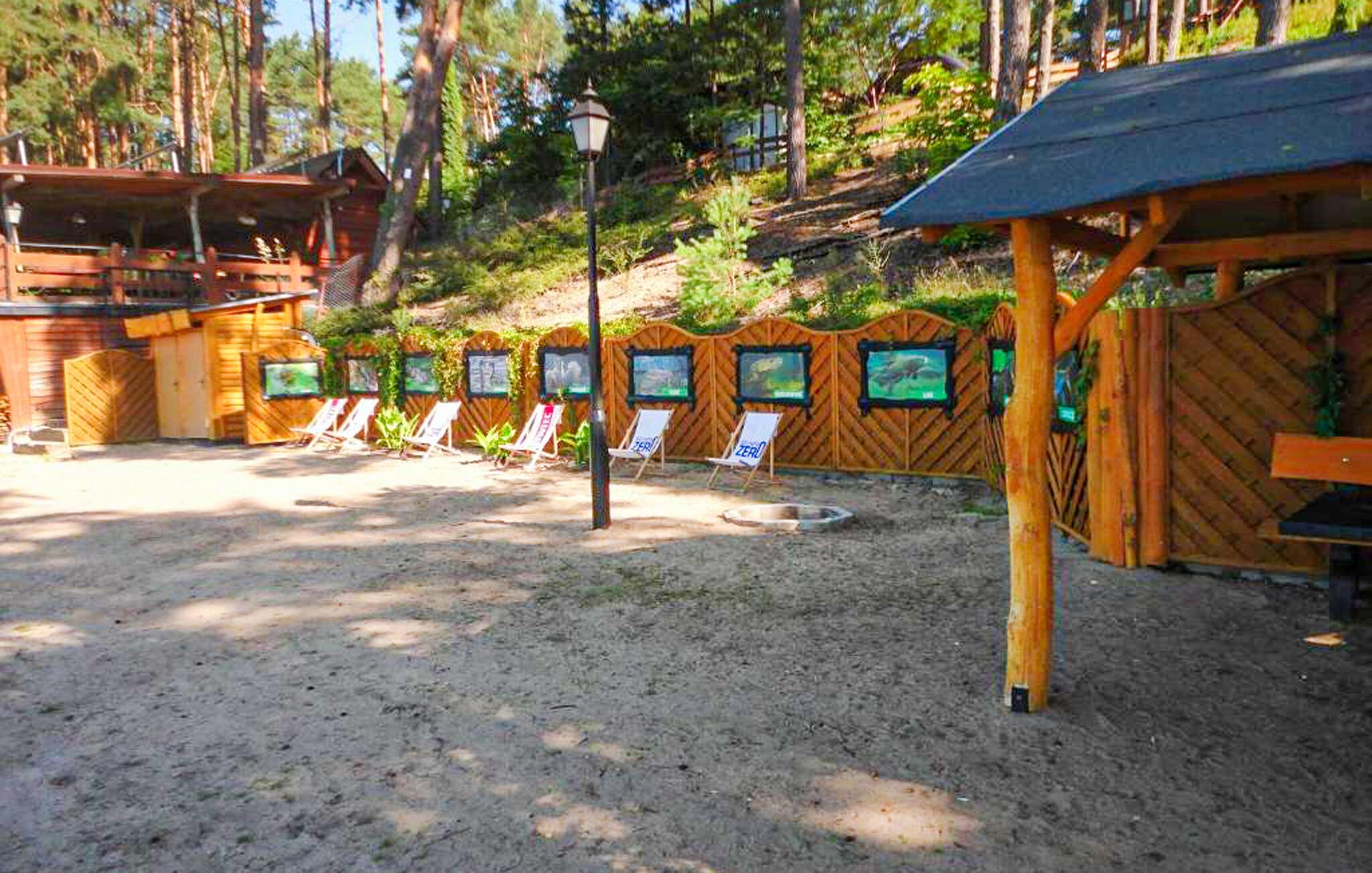 Tilbring masser af tid udendørs og nyd det rummelige fælles strandområde ved Ocypel-søen. Slap af på den overdækkede terrasse med havemøbler eller tilbered et måltid sammen på grillen. Om aftenen kan I tænde et bål ved bålstedet og lade dagen forsvinde blidt. Lad børnene lege i legehuset og med det andet legeredskab. Gå til badebroen, og hop direkte i det klare vand. Lej et SUP-board, kano eller motorbåd, og udforsk søen fra vandet.