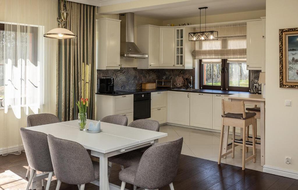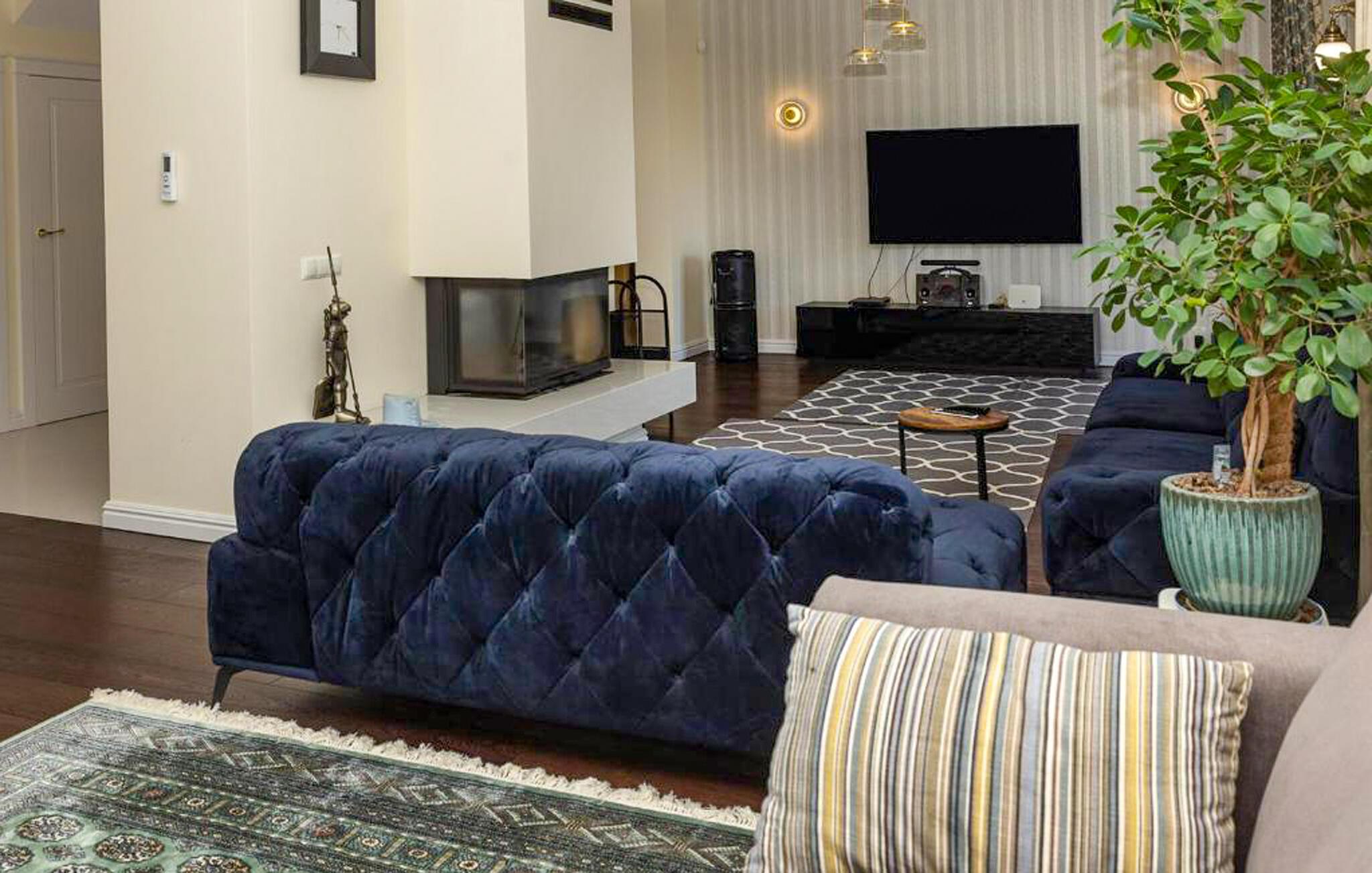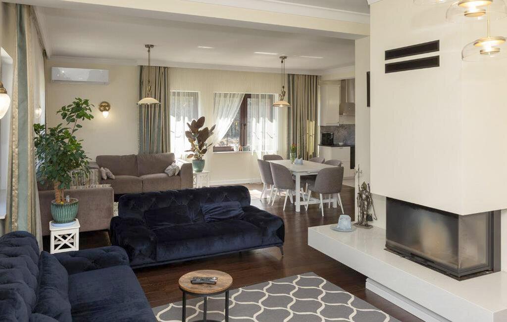 Træd indenfor og oplev det rummelige, lyse interiørs harmoniske farver. De moderne opholdsrum er åbne. Slap af sammen i den elegante opholdsstue med komfortable sofaer, pejs og tv, mens adskillige andre hyggelige siddeområder tilbyder muligheder for rolige tilflugtssteder. Det fuldt udstyrede køkken af ??høj kvalitet tilbyder alt, hvad I behøver for at lave mad sammen, mens spiseområdet lægger op til at nyde afslappede måltider.