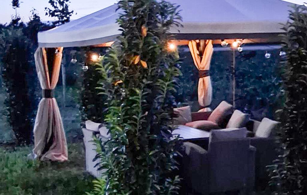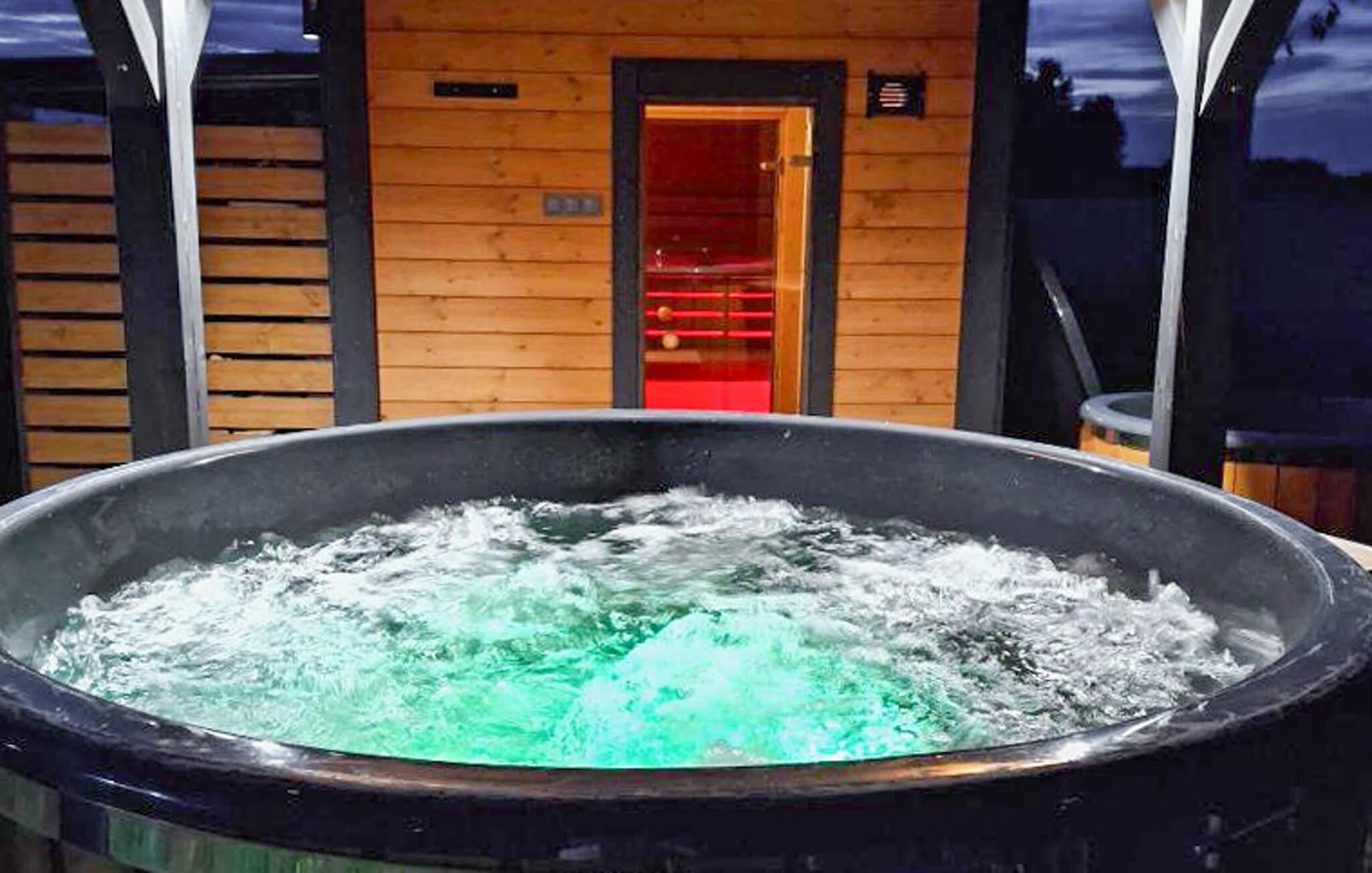 Træd udenfor og oplev den store grund, der tilbyder masser af privatliv. Det velholdte udendørsområde lægger op til at tilbringe tid i den friske luft eller samles behageligt under lysthuset. Forkæl jer selv med afslapning i wellness-området med spabad og sauna, der begge tilbyder en betagende udsigt over det åbne landskab. Slap af på terrassen med havemøbler og nyd den særlige atmosfære under blød belysning om aftenen.