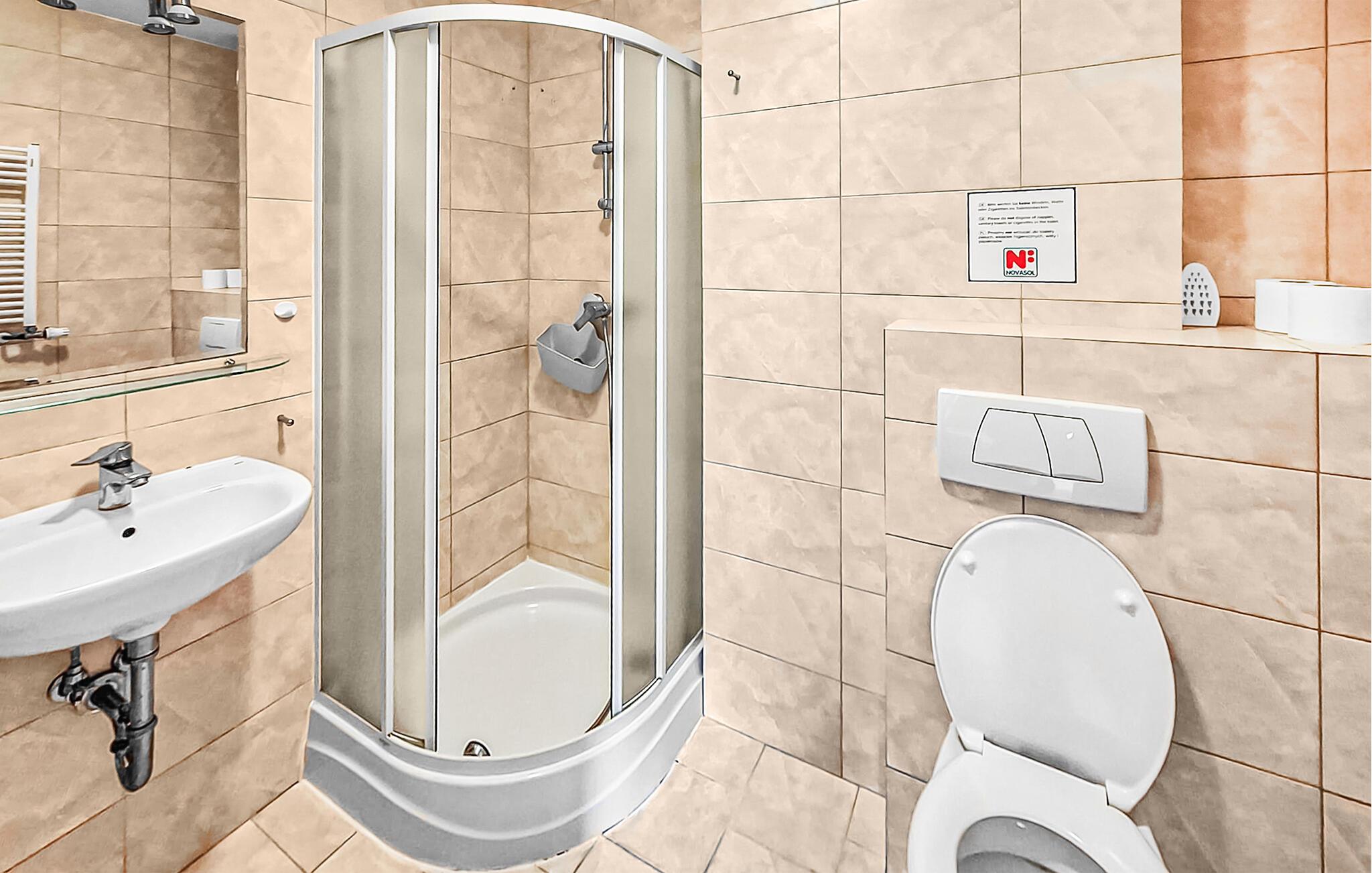 Badeværelse (nr. 5) - WC. Varmt og koldt vand. Bruser