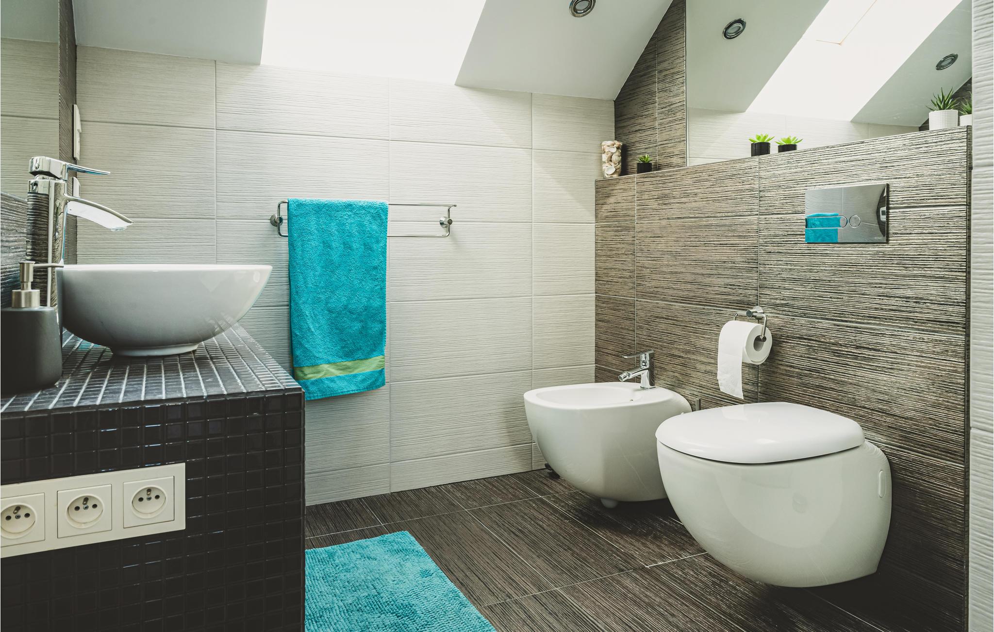 Badeværelse (nr. 1) - WC. Varmt og koldt vand. Bruser