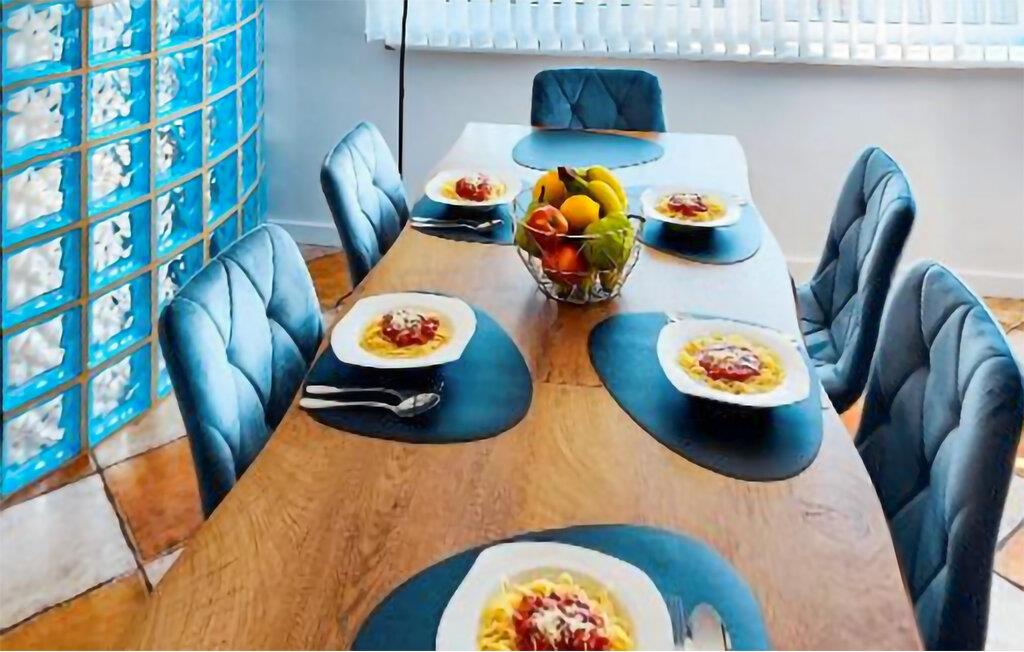 Kun en kort gåtur fra sandstranden byder denne rummelige og stilfuldt møblerede lejlighed jer velkommen, hvor I kan undslippe hverdagens travlhed med venner eller familie. Nyd afslappende måltider, planlæg jeres aktiviteter, og slap af i de komfortable sofaer efter en lang dag til en spilleaften.