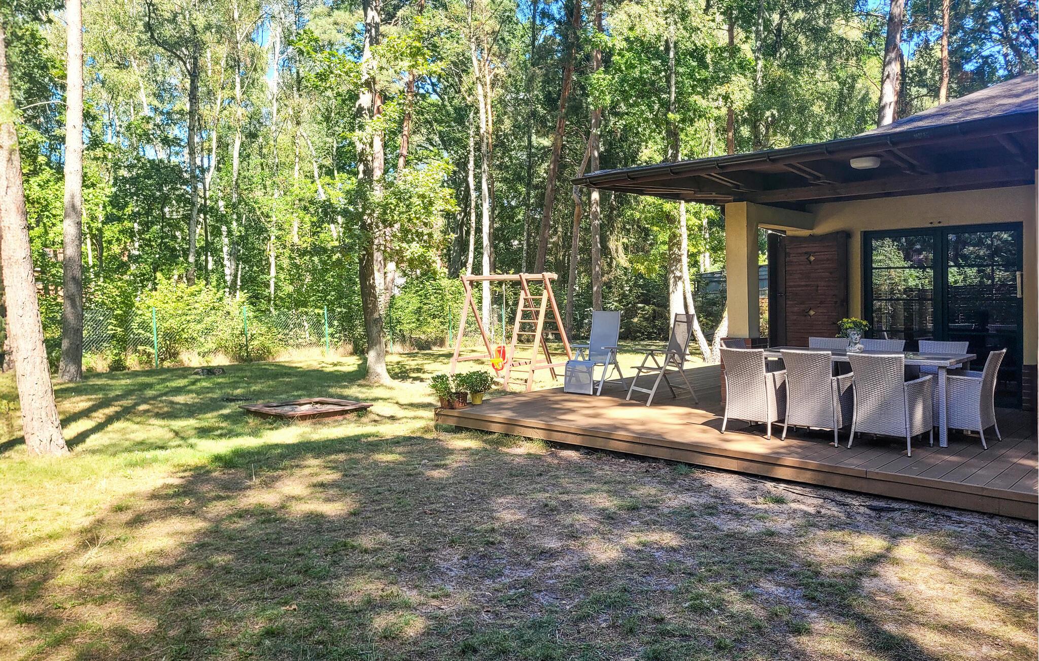 Dette feriehus ligger på en stor lukket grund nær Østersøkysten, hvor der er brusende bølger og bred, hvid sandstrand. Her kan I rigtig slappe af og glemme alt om hverdagens stress og jag. Huset er indrettet med stil og god smag – de perfekte rammer til en komfortabel ferie. Kaminen i stuen er dejlig at tænde op i på en lidt køligere dag. Så er hyggen helt sikkert garanteret. Den store, delvist overdækkede terrasse på hele 44 m² er stedet, hvor hele familien kan nyde de lune, lange sommerdage. Huset er sikret med alarmanlæg. Pobierowo er en rigtig badeby, hvor vandhundene får opfyldt deres drømme. Her er der altid mulighed for masser af liv og glade dage for hele familien..