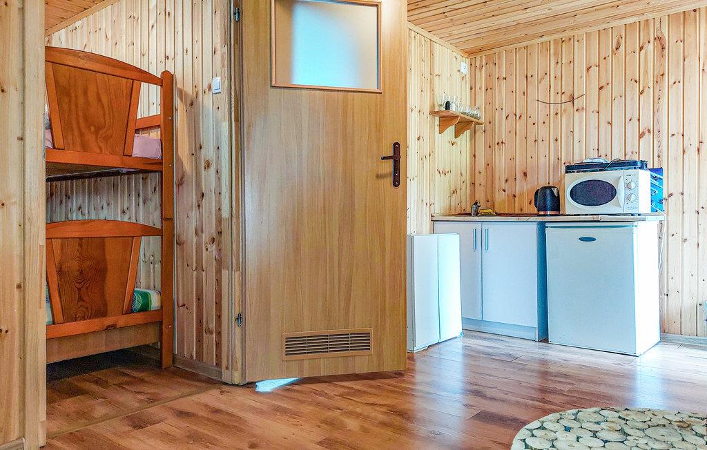 Tilbring en afslappende ferie med jeres familie og jeres hund i denne træhytte i et indhegnet område. Sommerhuset er udstyret med alt hvad I behøver til jeres ferie ved den polske østersøkyst. Nyd jeres morgenkaffe og morgenmad på jeres terrasse. Børnene kan derefter lege i det familievenlige fællesområde. Her er masser af legetøj og en legeplads. Om aftenen kan I sidde rundt om bålet med de andre gæster og nyde en drink og bage snobrød.